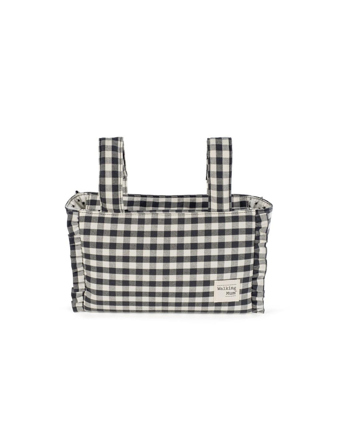 El bolso organizador Remy en cuadro vichy XL negro para silla de paseo es un modelo muy ligero además de ser resistente y espacioso para que puedas llevar todo lo que podrías necesitar durante el paseo de tu bebé. Aparte de la gran capacidad que tiene, está distribuido para facilitarte la organización, con varios bolsillos exteriores e interiores que te ayudarán a colocar todos tus complementos ordenados y así puedes ubicarlos más fácil cuando vayas a usarlos. Su diseño moderno y casual lo hacen perfecto para usar a diario y combinar con tus looks casuales o deportivos. Incorpora asas cortas con las que puedes fijarla a cualquier modelo de silla de paseo. Gran calidad y mucho estilo. Fabricado en un material resistente y de fácil limpieza a mano o a máquina a 30 °C. Walking Mum protege a tu bebé utilizando los mejores tejidos, libres de colorantes azoicos y sustancias nocivas para la salud. Nuestra colección Walking Mum está diseñada con un particular sello de estilo urbano y moderno que no pasa desapercibido, para vestir diferente los paseos con tu bebé. Las bolsas de maternidad de esta línea son más sport y prácticas, especialmente pensadas en mamás y papás modernos que aprecian los diseños más actuales y en tendencia sin dejar de lado la calidad y la funcionalidad de los accesorios que complementan y hacen más cómodos todos los paseos con sus bebés. Especificaciones: Materiales: exterior 65% algodón ? 35% poliéster / interior 100% algodón. Color: Negro. Medidas: 32 X 17 X 12 cm.