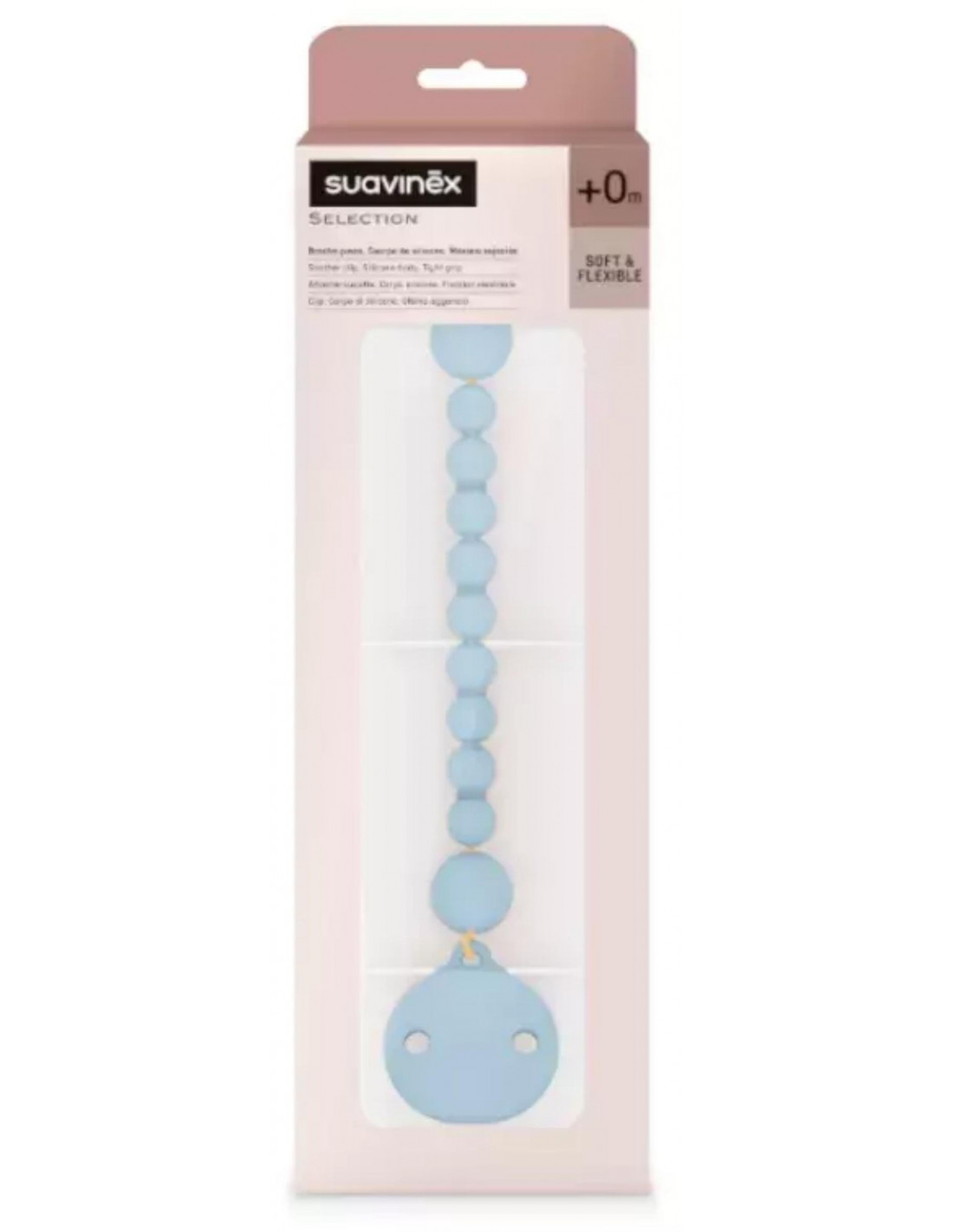 Broche con pinza para chupete Suavinex, con bolitas de silicona muy suave y flexible.