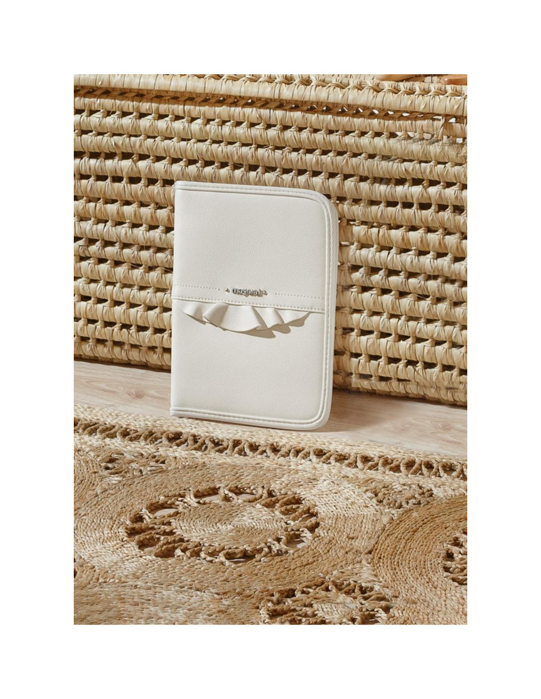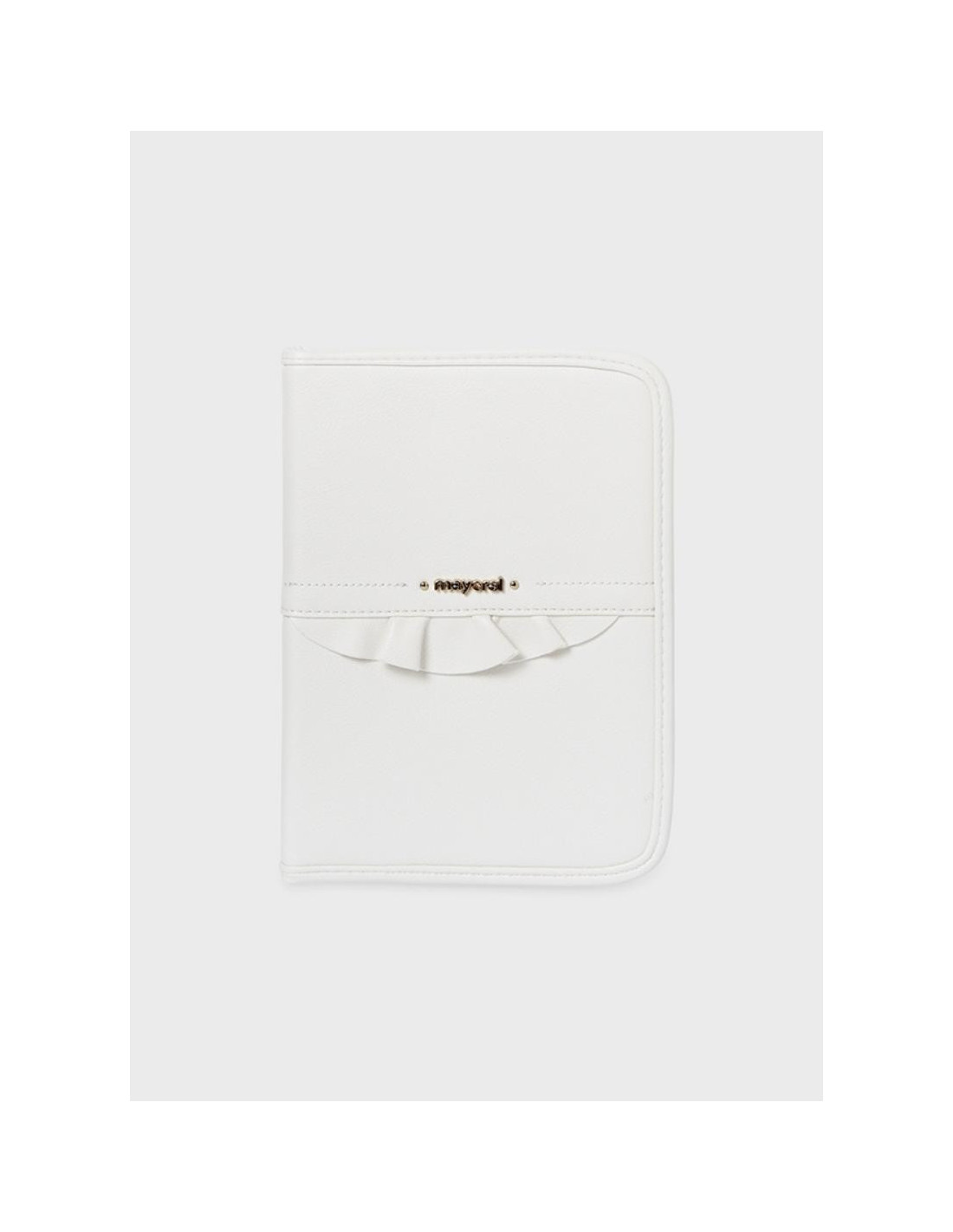 Estiloso portadocumentos de bebé de cuidado diseño, cuenta con compartimentos interiores para una mejor organización. Cierre con cremallera. Elementos de adorno: volante decorativo. Este artículo tiene unas dimensiones de 24,5 x 17 cm.