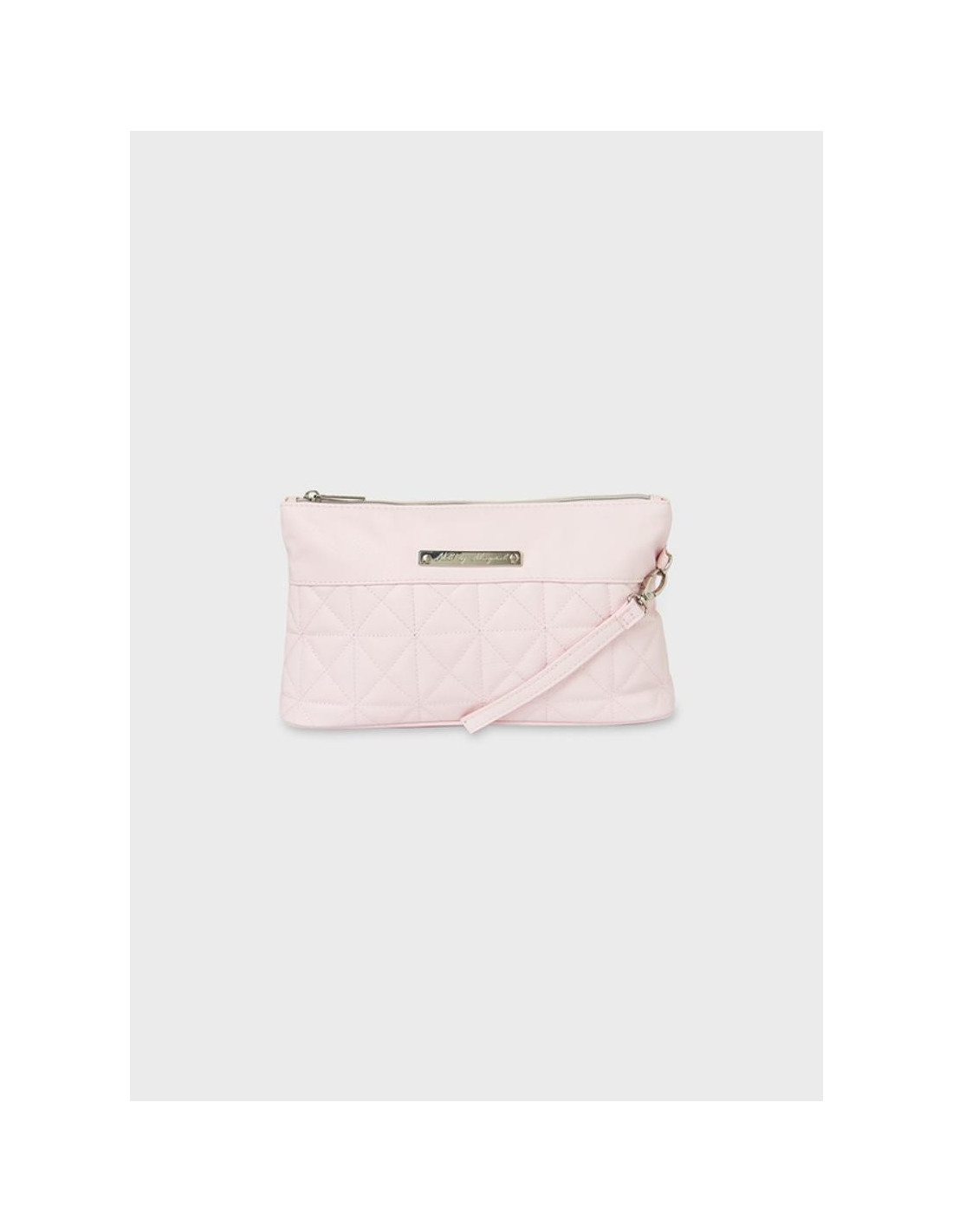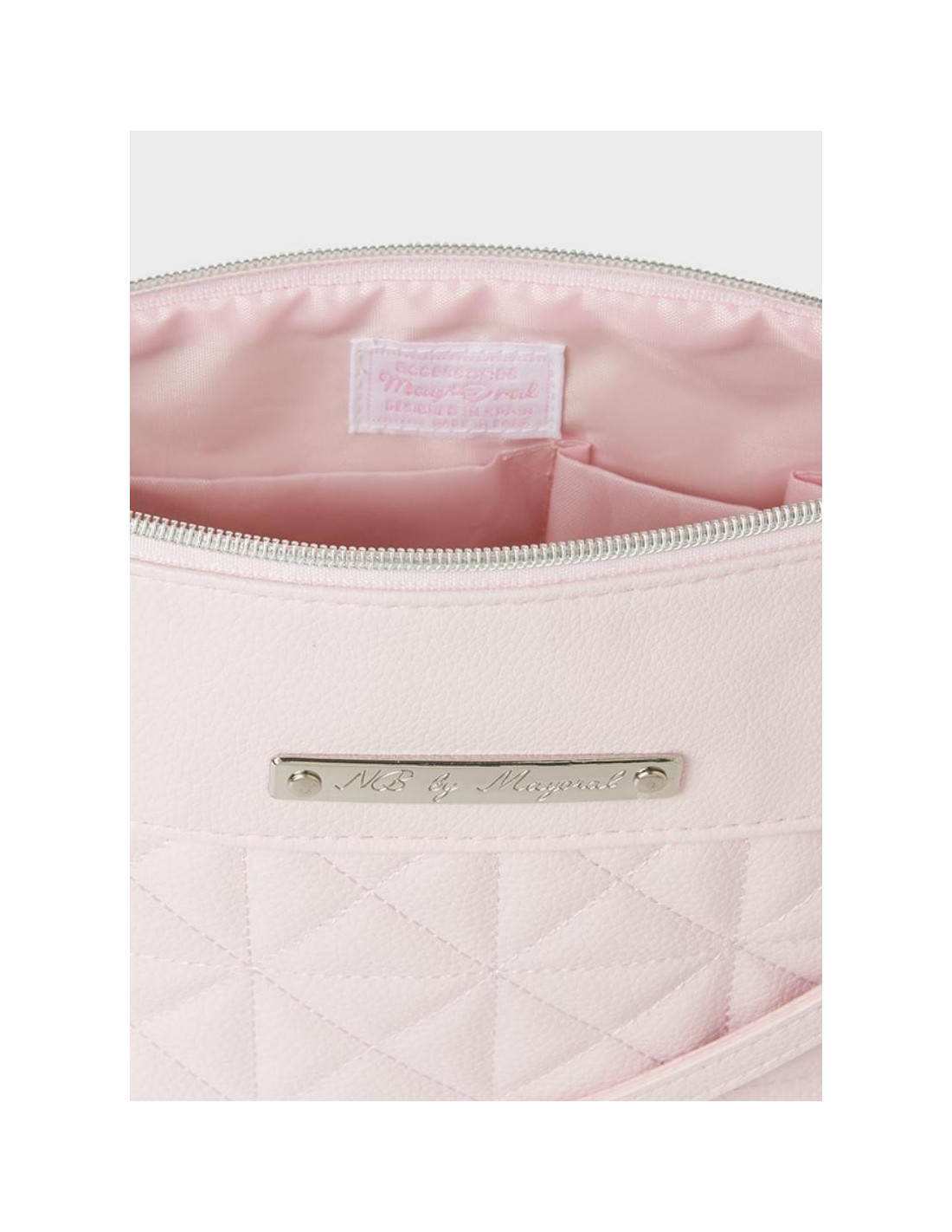 Neceser-organizador ideal para guardar artículos básicos de aseo e higiene de tu bebé, como cremas y lociones. Cierre central delantero con cremallera. Moderno exterior de polipiel. Elementos de adorno: detalles pespunteados. Este complemento está diseñado a juego con una de nuestras colecciones de bolsos y accesorios. Este artículo tiene unas dimensiones de 17,5 x 29 cm.