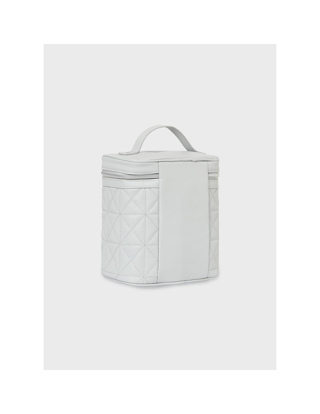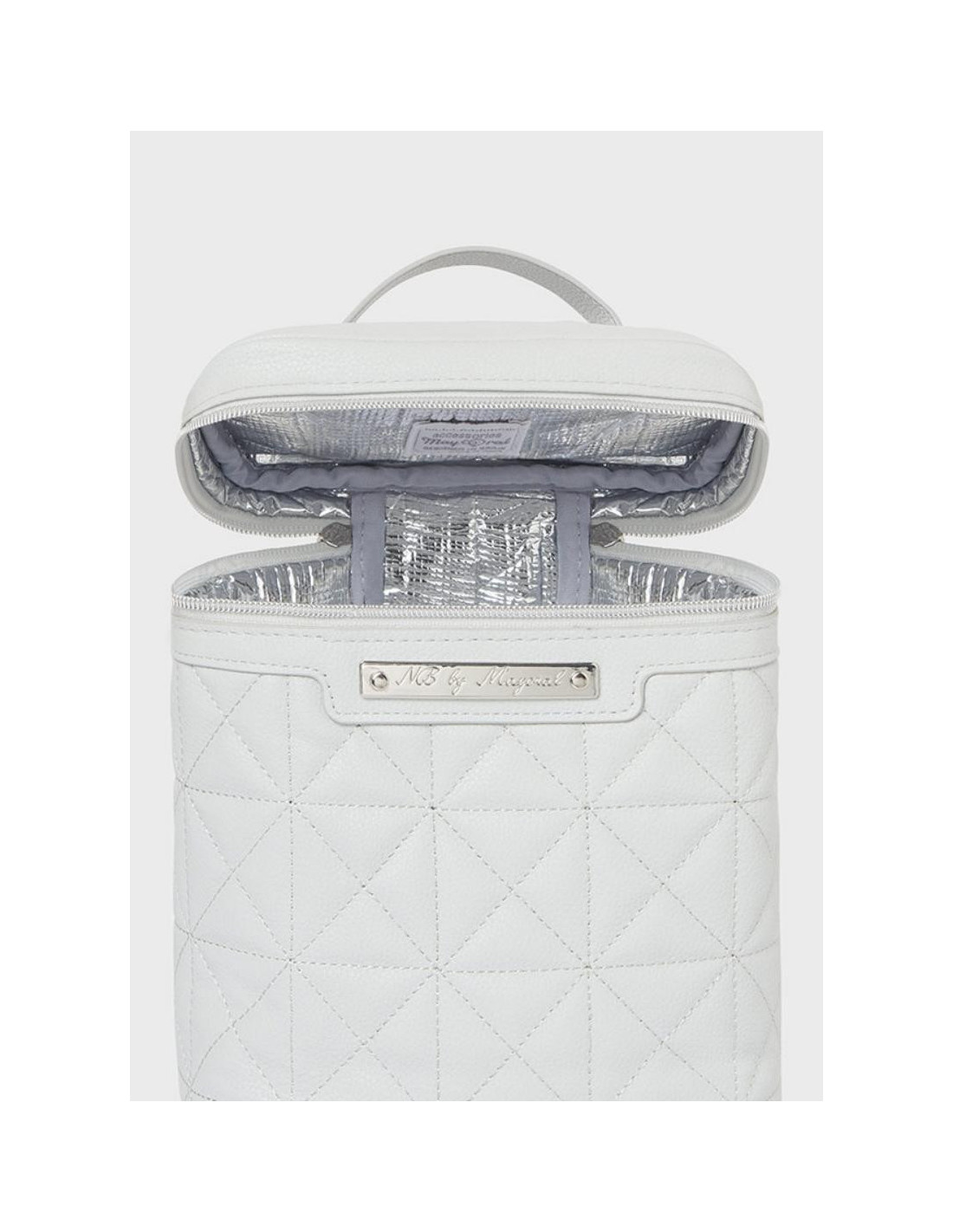 Compacta nevera de bebé con interior de forro térmico, que permite la conservación de los alimentos a la temperatura deseada. Cierre con cremallera. Moderno exterior de polipiel. Este artículo tiene unas dimensiones de 21,5 x 19 x 13 cm.