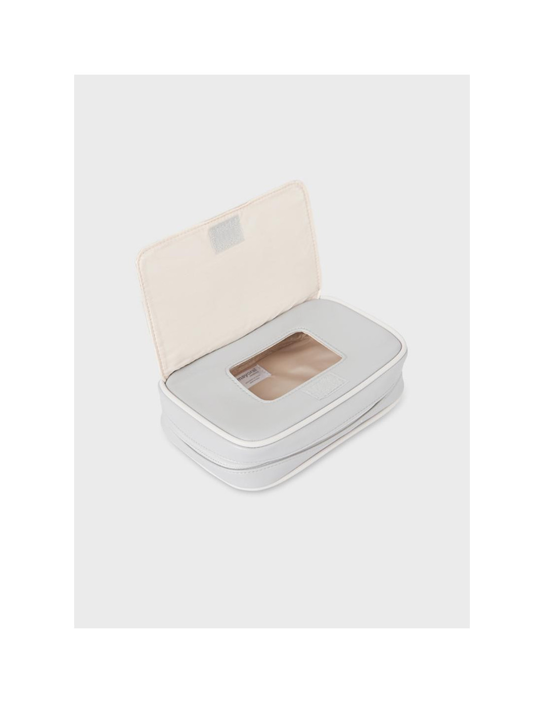 Elegante y práctica funda de toallitas para bebé, con aberturas para sustituir fácilmente los recambios. Este artículo tiene unas dimensiones de 13 x 21 x 4,5 cm.