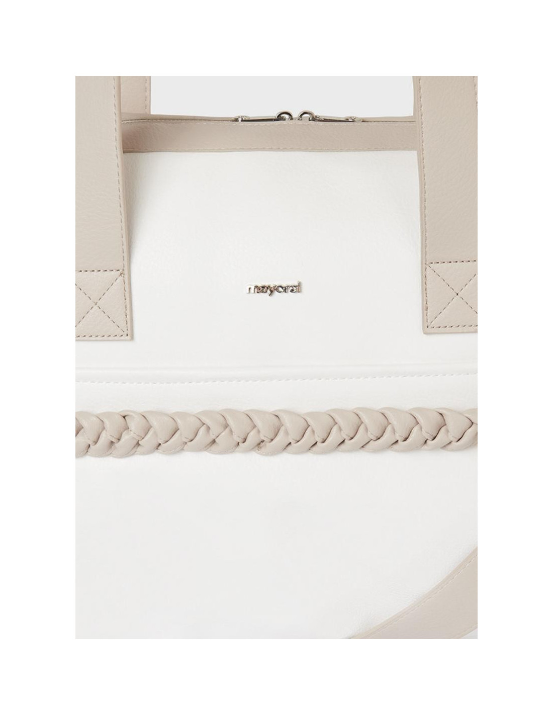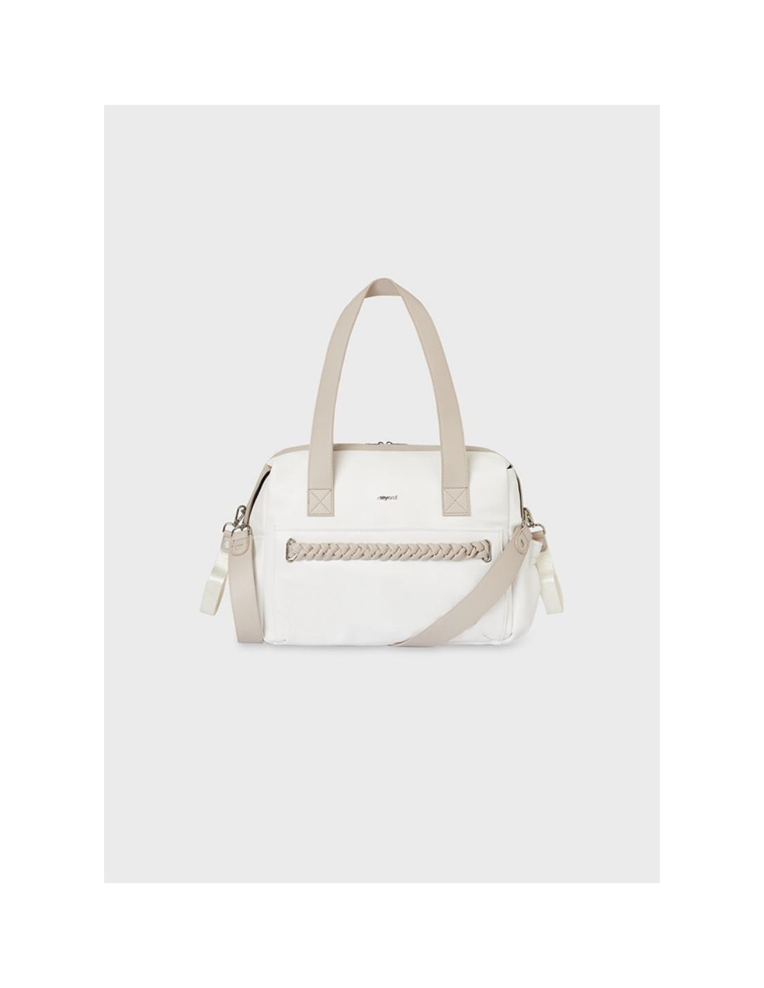 Espacioso bolso de maternidad pensado para ayudarte en el día a día y guardar todo lo necesario para tu bebé. Cierre con cremallera. Moderno exterior de polipiel. Elementos de adorno: detalles trenzados. Este artículo tiene unas dimensiones de 29 x 40 x 18 cm.