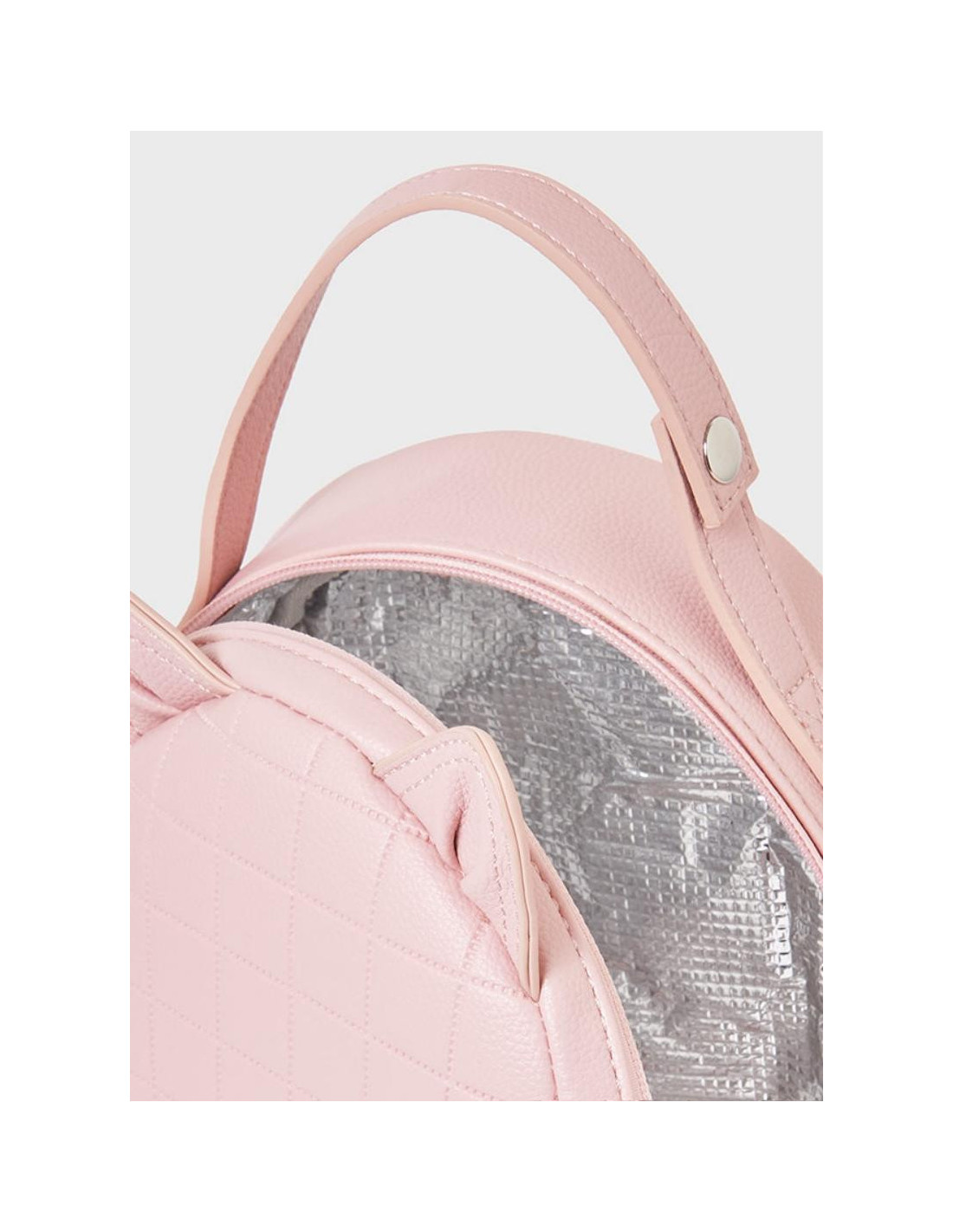 Compacta nevera de bebé con interior de forro térmico, que permite la conservación de los alimentos a la temperatura deseada. Cierre con cremallera. Moderno exterior de polipiel. Elementos de adorno: aplique de orejitas, logotipo decorativo. Este artículo esta diseñado a juego con otras prendas de la colección que comparten una misma línea de color. Podrás construir estilismos combinables y divertidos con facilidad. Dimensiones 23 x 18 x 9 cm.