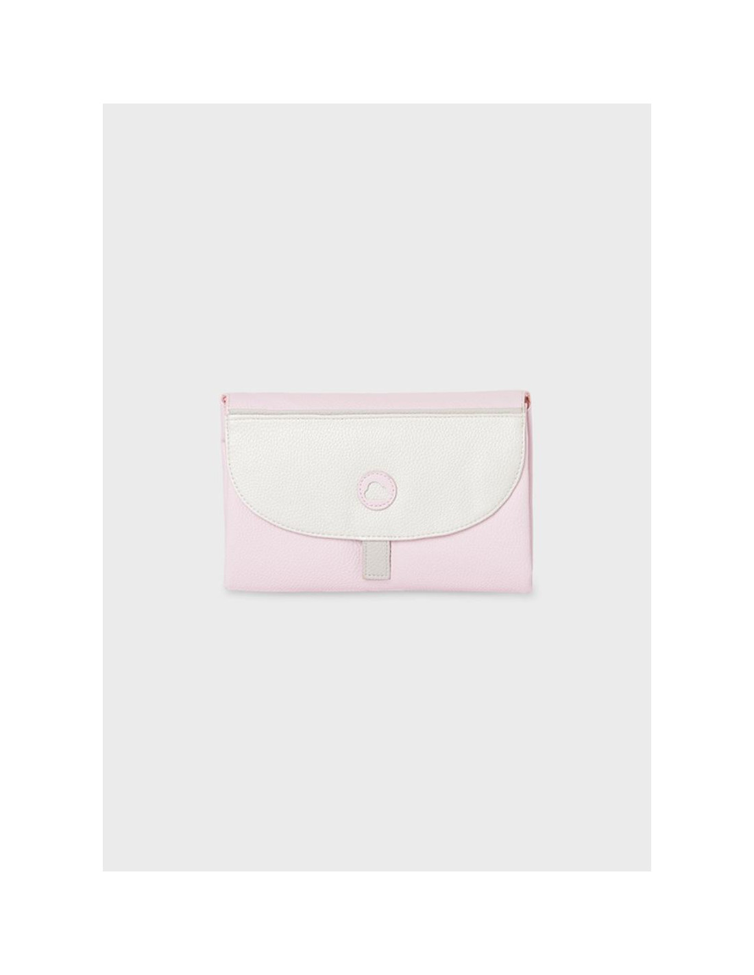 Práctico cambiador de bebé plegable y compacto con forma de bolso de mano, imprescindible para atender a tu pequeño/a fuera de casa. Moderno exterior de polipiel. Este artículo abierto tiene unas dimensiones de 76 x 49 cm.