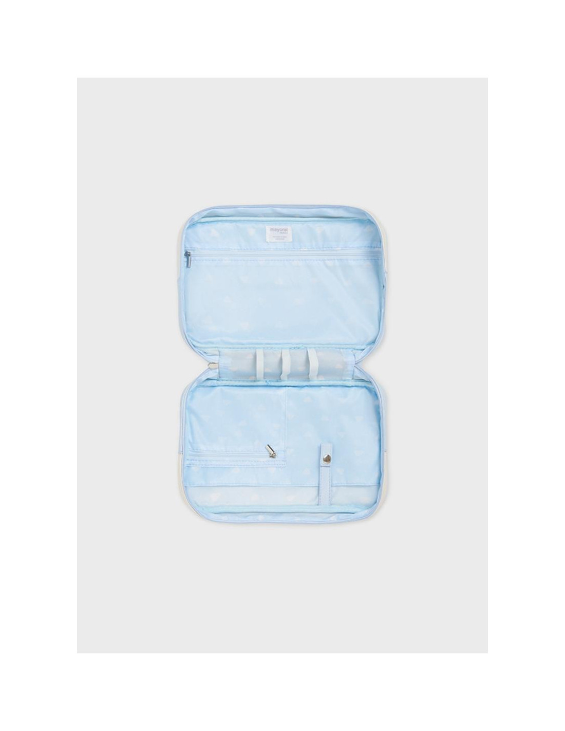 Neceser-organizador ideal para guardar artículos básicos de aseo e higiene de tu bebé, como cremas y lociones. Cierre con cremallera. Mezcla de tejidos combinados para lograr un diseño único y diferente. Elementos de adorno: logotipo decorativo. Este artículo tiene unas dimensiones de 17 x 27 x 7cm.