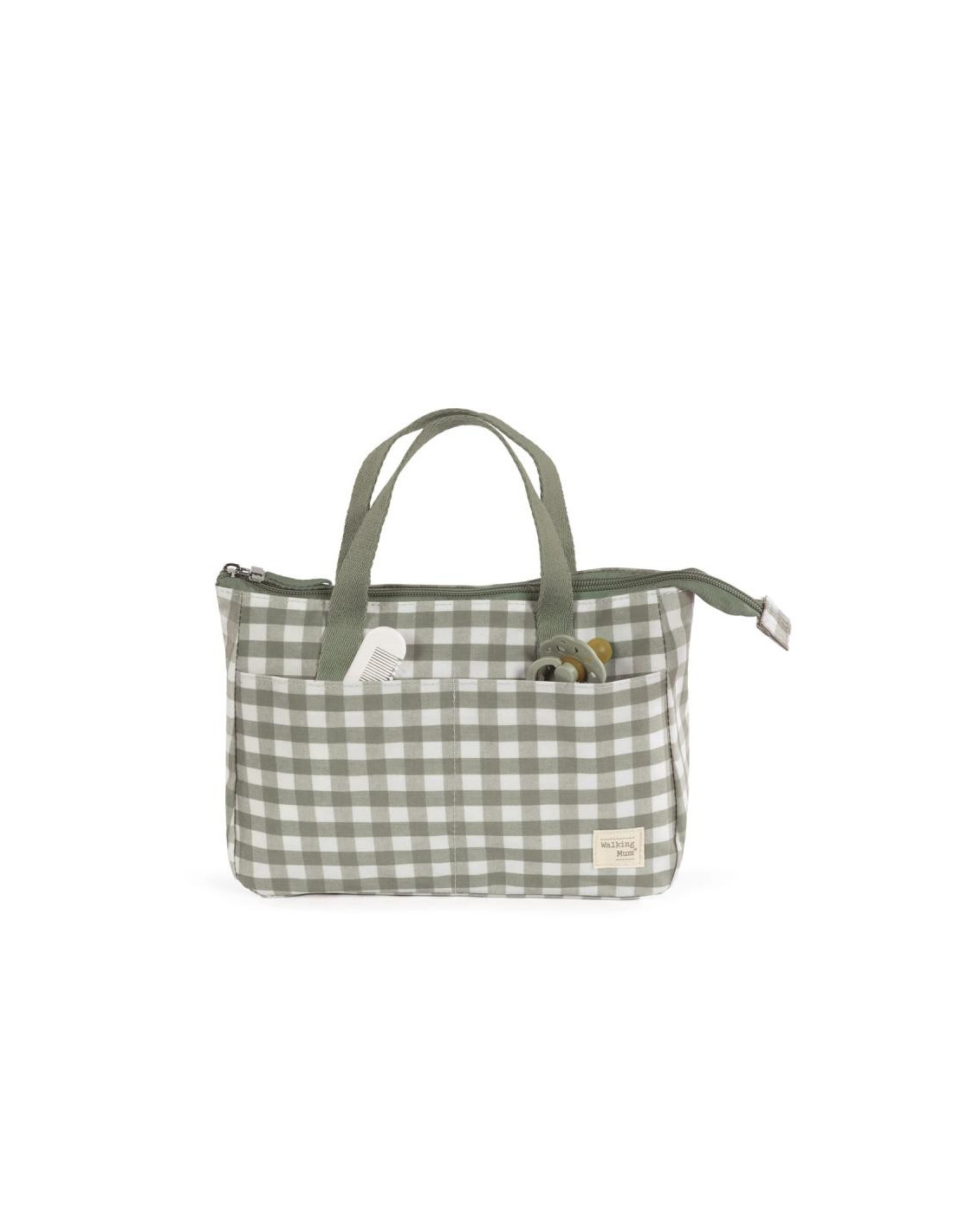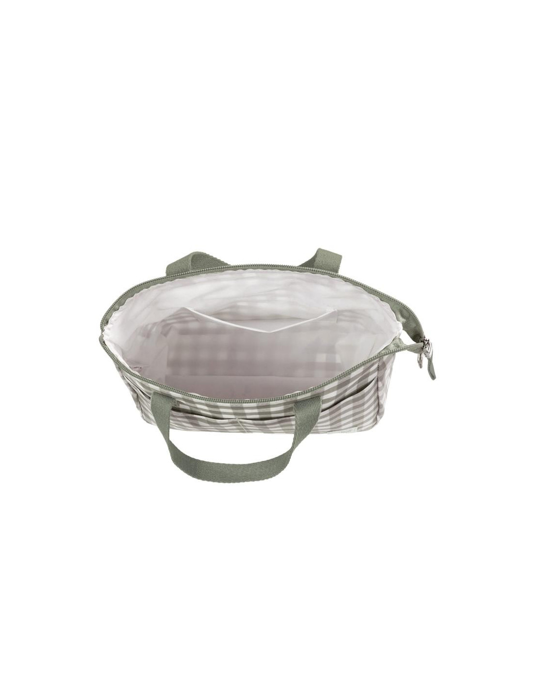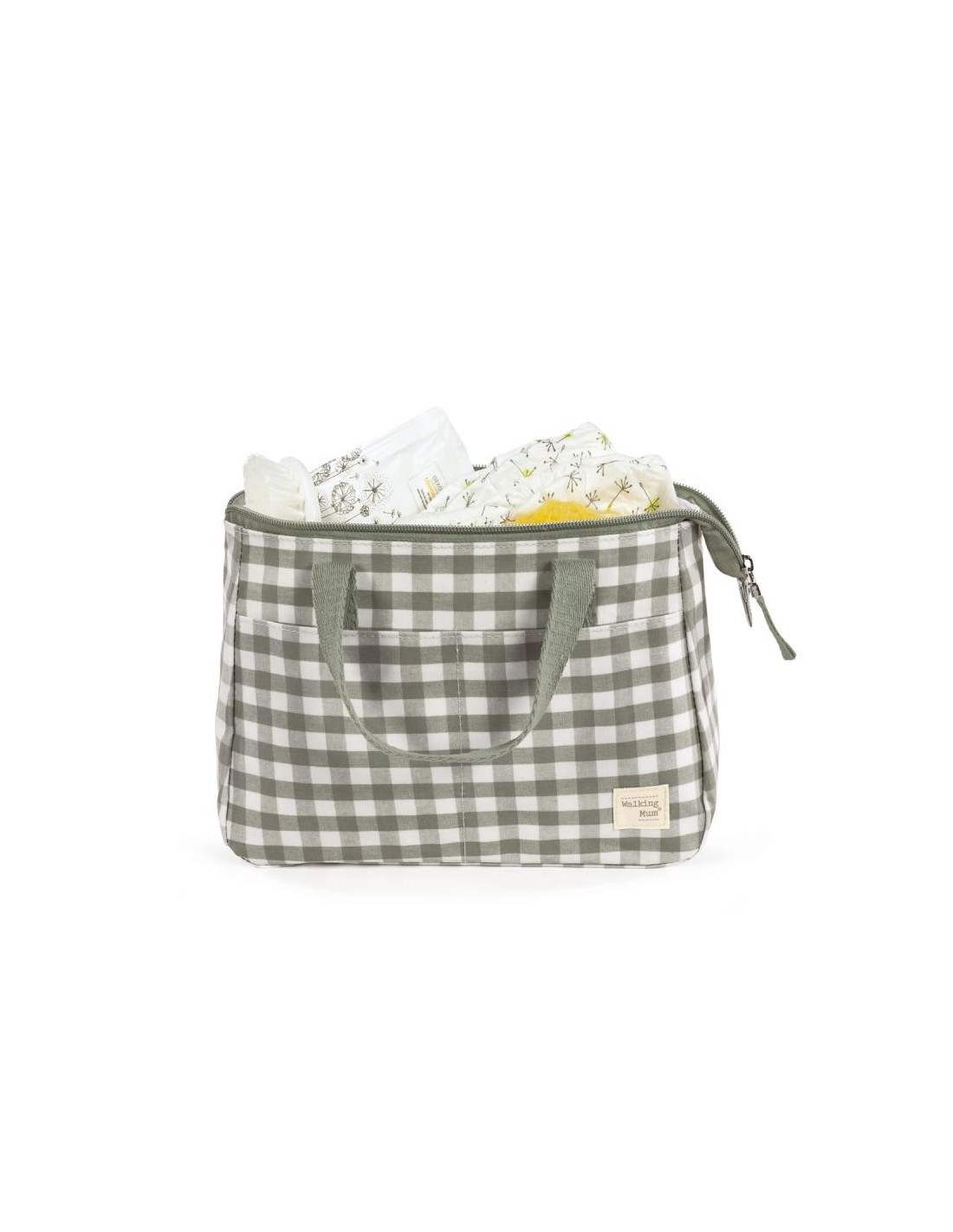 El neceser de bebé Caetana Stone de cuadros verdes es un bolso especialmente pensado para llevar todos los productos de aseo de nuestra niña o niño al salir de casa. Es un modelo diferente y moderno con mucho estilo para adecuarse a lo que necesitas. Su diseño simple y cómodo de forma rectangular ofrece comodidad gracias a su distribución con varios compartimentos para transportar todos los artículos de aseo de tu bebé que por ser tan pequeños a veces se pierden dentro del bolso canastilla y aquí puedes tenerlos todos ordenados y siempre a mano. Cuenta con asas ubicadas en la parte superior para cargar el bolso y tiene un cierre seguro de cremallera para evitar que algo pueda salirse. Gran calidad y mucho estilo. Fabricado en un material resistente y de fácil limpieza a mano o a máquina a 30 °C. Walking Mum protege a tu bebé utilizando los mejores tejidos, libres de colorantes azoicos y sustancias nocivas para la salud. Nuestra colección Walking Mum guarda toda la calidad de la marca Pasito a Pasito pero con un particular sello de estilo urbano y moderno que no pasa desapercibido, para vestir diferente los paseos con tu bebé. Los accesorios de esta línea son más sport y prácticos, especialmente pensadas en mamás modernas que aprecian los diseños más actuales y en tendencia sin dejar de lado la calidad y la funcionalidad de complementos que hacen más cómodos todos los paseos con sus bebés. Especificaciones: Materiales: 65% algodón /35% poliéster plastificado. Medidas: 27X19X11 cm.