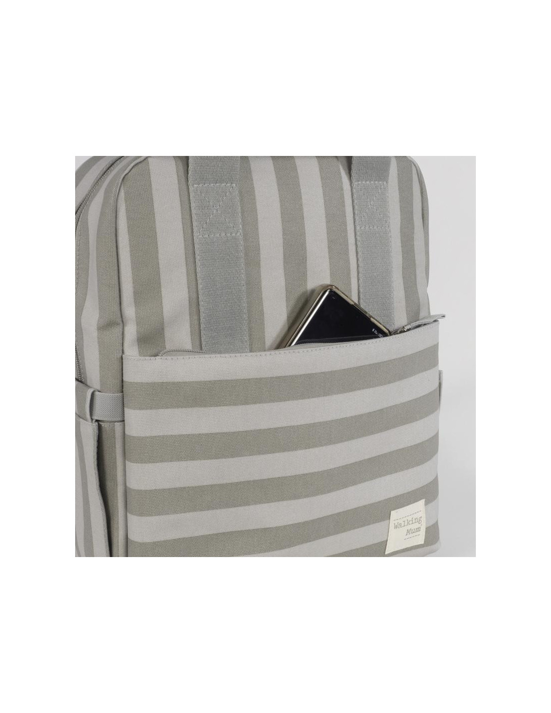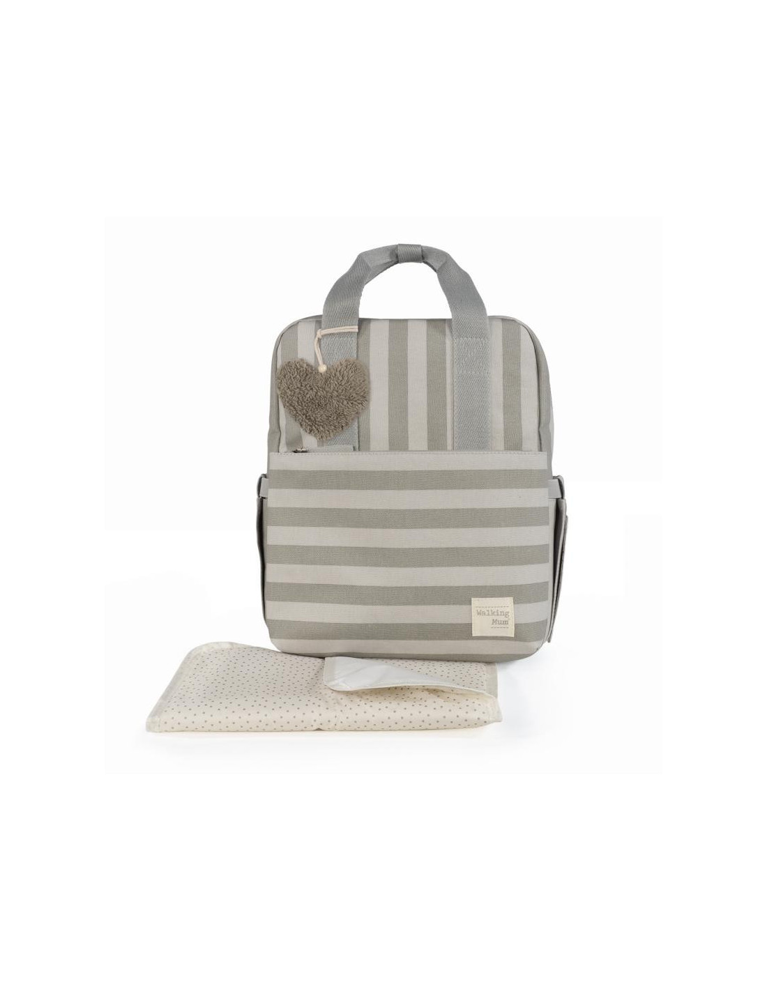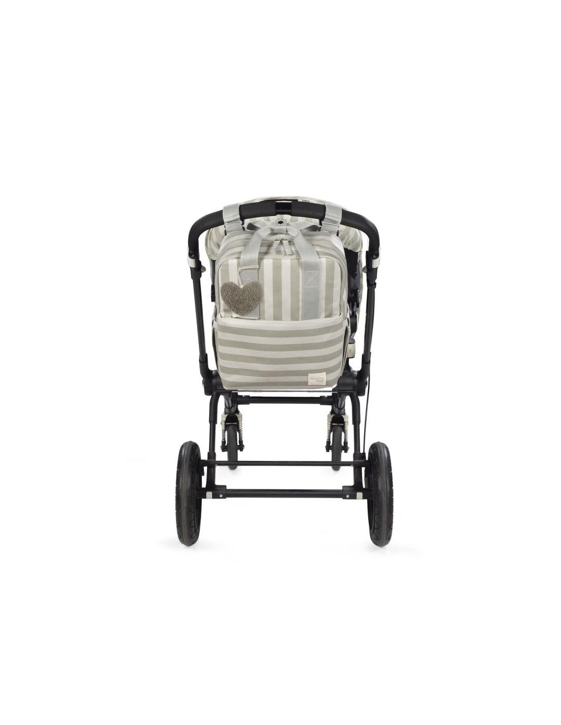 Una bolsa canastilla y mochila al mismo tiempo, muy moderna y urbana, ideal para llevar tus cosas y las de tu bebé, con mucho estilo, a todos sus paseos. La bolsa Sintra de rayas verdes para silla de paseo es un modelo multifunción muy ligero, resistente y de gran capacidad para llevar todo lo necesario en el paseo del bebé. Incluye un charm en forma de corazón donde puedes bordar el nombre de tu bebé para personalizar el bolso. Su esquema ofrece múltiples bolsillos exteriores e interiores para poder tener todo ordenado y a mano. Tiene bolsillos para guardar los biberones y mantenerlos seguros, elásticos para colocar cubiertos, para las toallitas húmedas