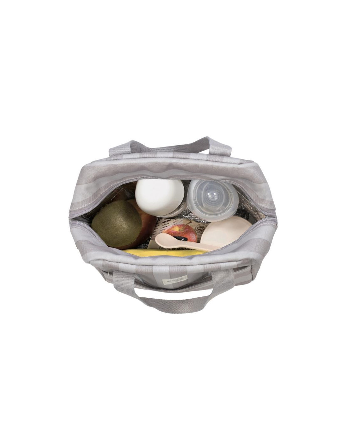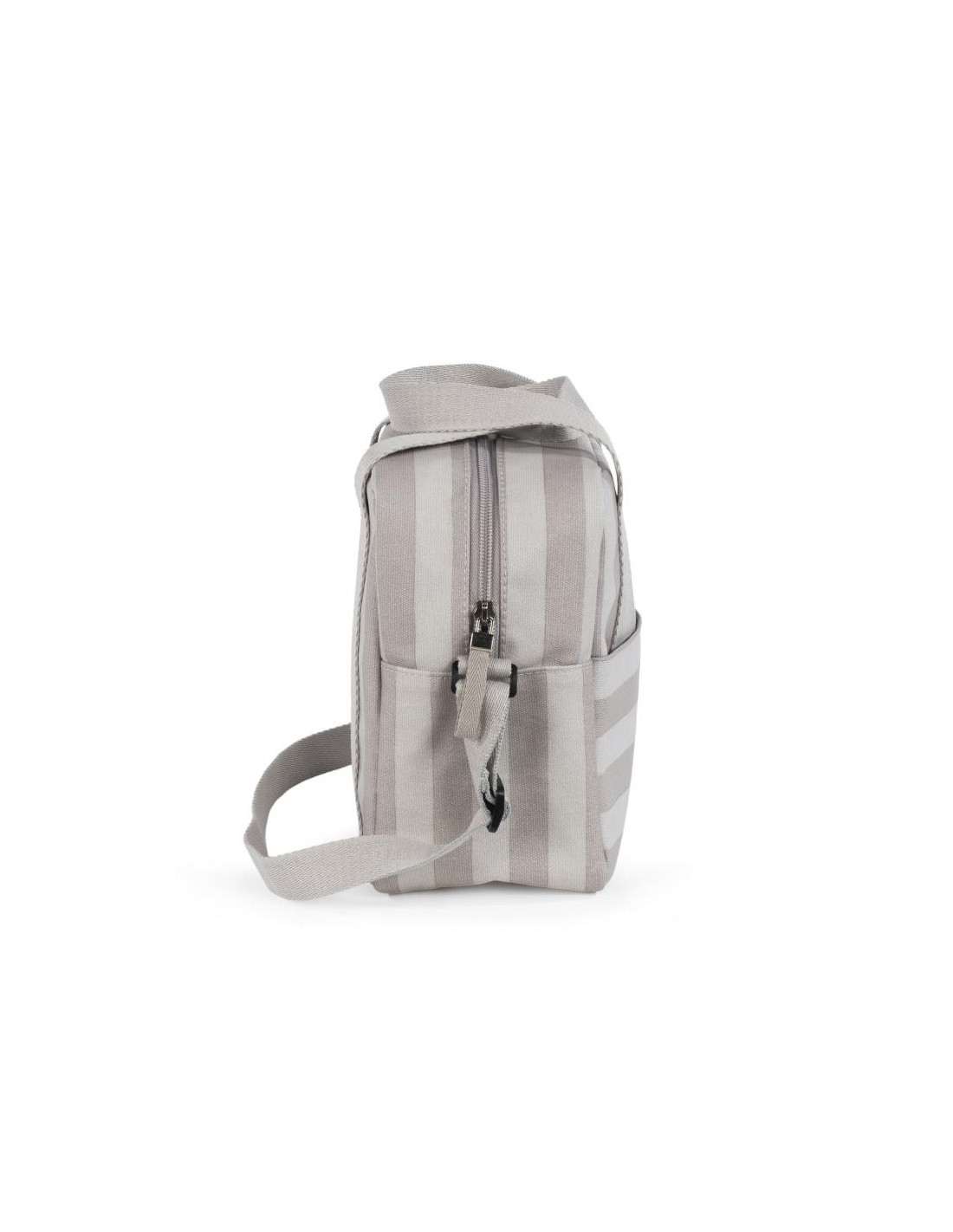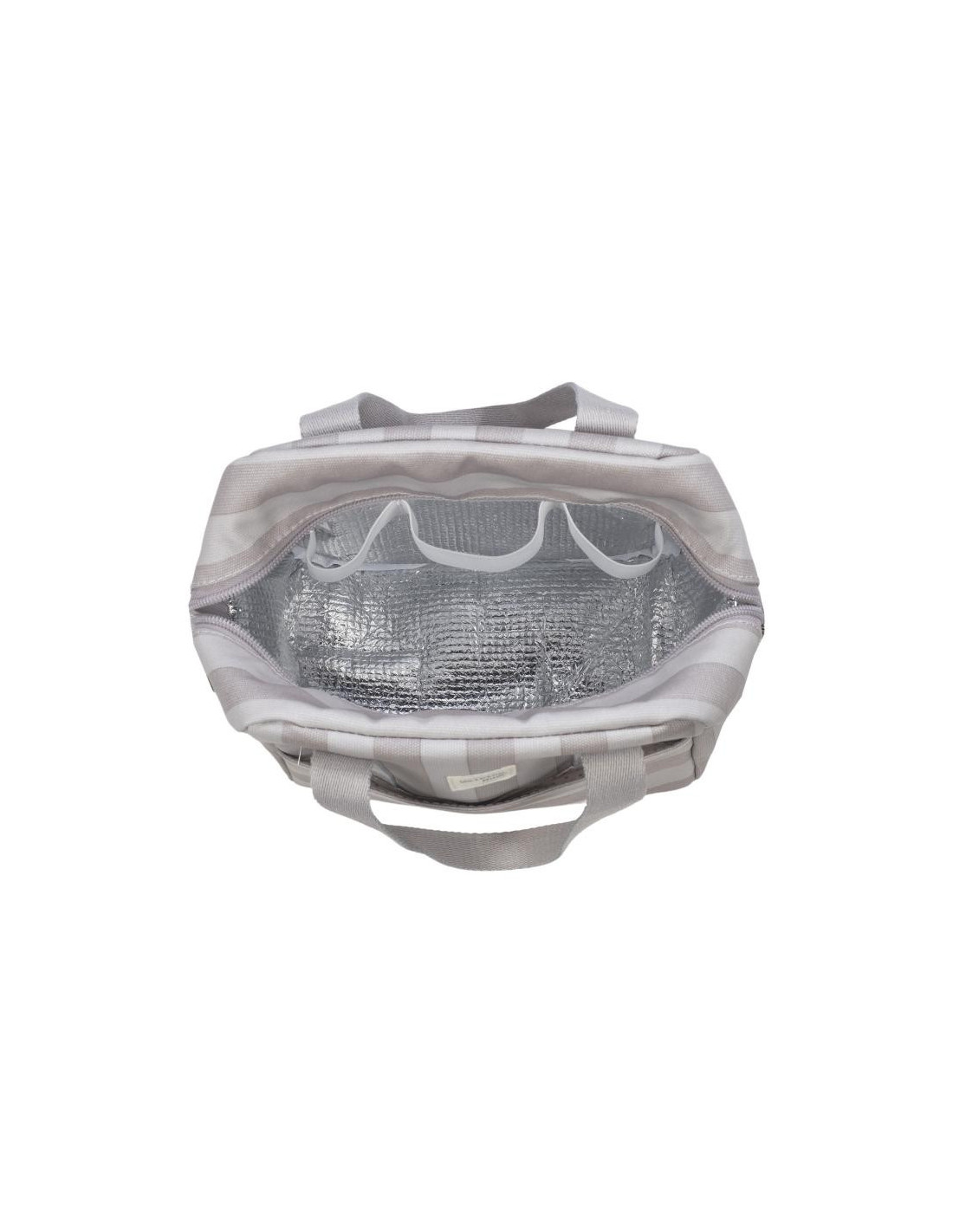 Bolsa térmica para biberones Sintra de rayas beig. Mantiene la temperatura durante 4 horas. También incorpora una asa larga para poder colgarla en el hombro y asa corta de mano. Gran calidad y mucho estilo. Fabricada en un material resistente y de fácil limpieza. Walking Mum protege a tu bebé utilizando los mejores tejidos, libres de colorantes azoicos y sustancias nocivas para la salud. Nuestra colección Walking Mum guarda toda la calidad de la marca Pasito a Pasito pero con un particular sello de estilo urbano y moderno que no pasa desapercibido, para vestir diferente los paseos con tu bebé. Las bolsas de maternidad de esta línea son más sport y prácticas, especialmente pensadas en mamás y papás modernos que aprecian los diseños más actuales y en tendencia sin dejar de lado la calidad y la funcionalidad de los accesorios que complementan y hacen más cómodos todos los paseos con sus bebés. Especificaciones: Materiales: 65% algodón /35% poliéster plastificado. Medidas: 20X22X12 cm.