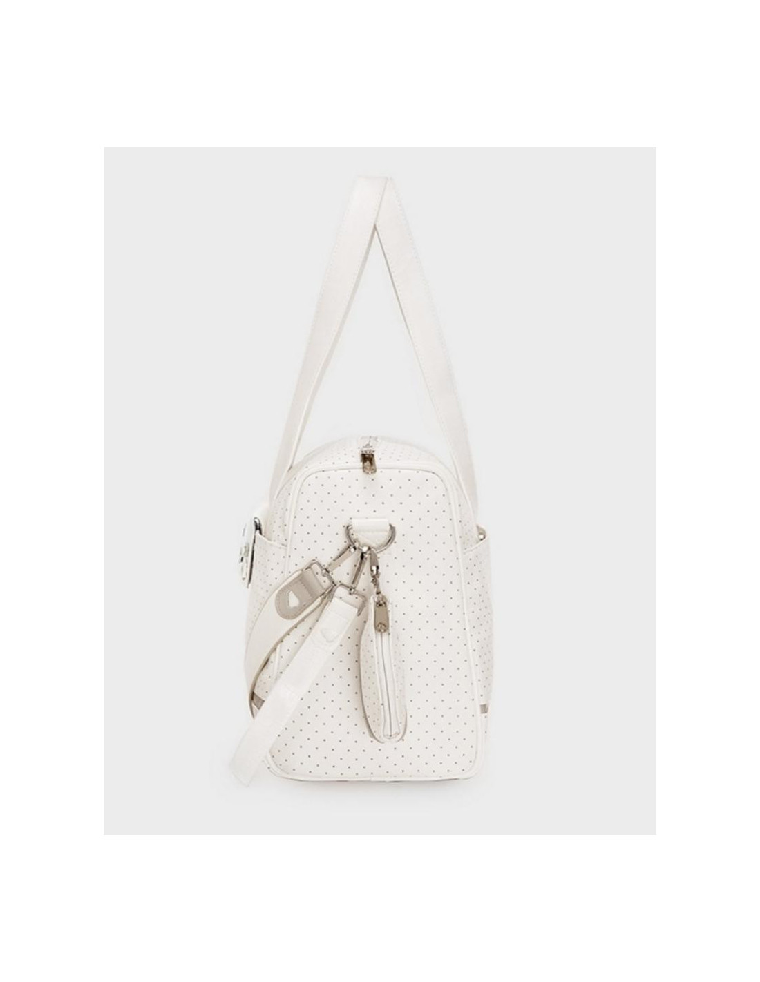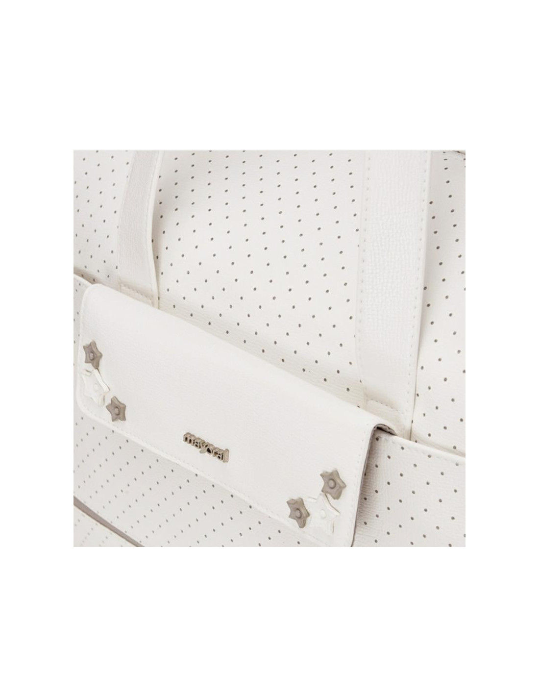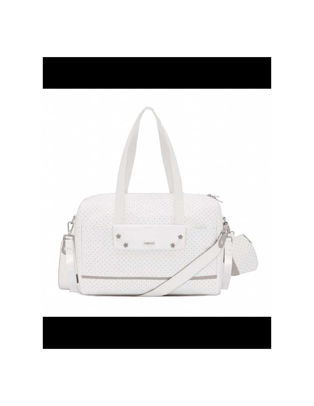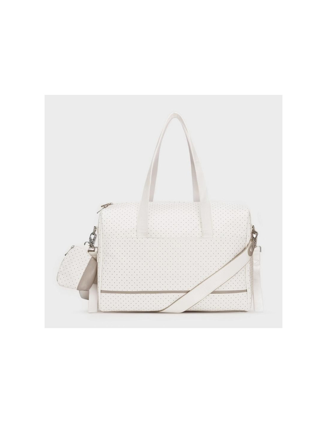 Bolso para bebé pensado para guardar sus accesorios indispensables. Un complemento práctico y divertido para completar cualquier look. Bolso de maternidad con portachupete a juego. Un set muy completo pensado para llevar todo lo que necesites para el cuidado de tu bebé. Cierre con cremallera. Moderno exterior de polipiel. Cuenta con asas de colgado para la sillita y otra cinta larga al hombro para usar como bandolera, ambas desmontables. Elementos de adorno: apliques metálicos, detalles de color a contraste, glitter. Estampado de lunares. Este complemento está diseñado a juego con una de nuestras colecciones de bolsos y accesorios. Dimensiones 28 x 42 x 20 cm.