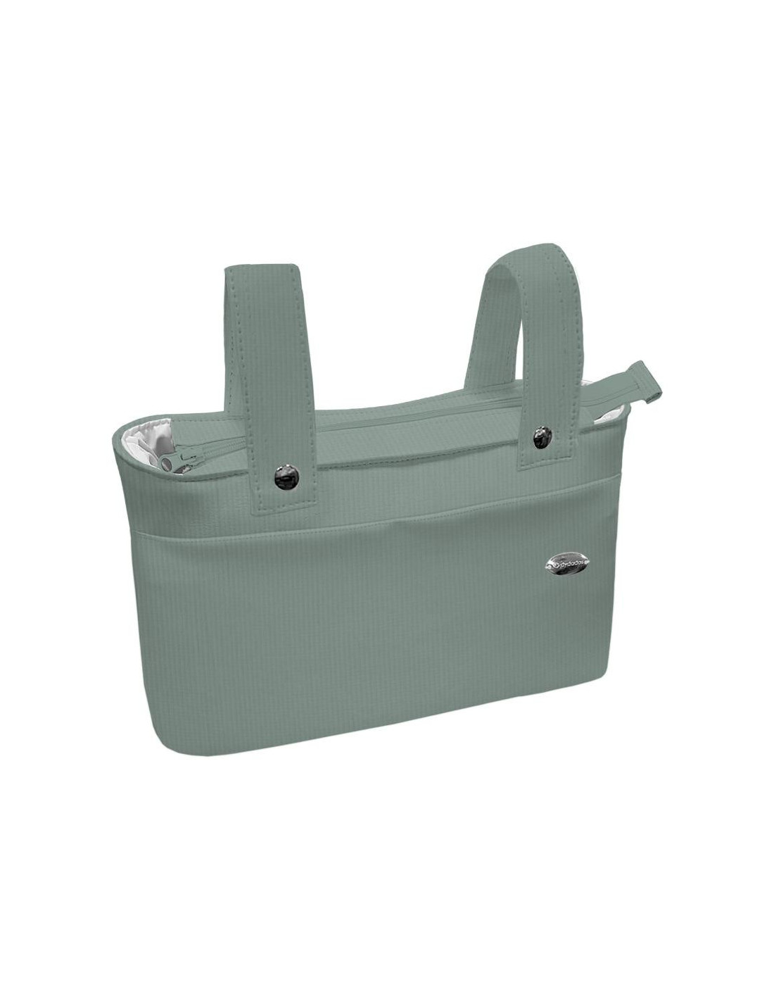 Se sujeta al carrito mediante asas con broches de presión. Asa larga para cuando quieres usar el bolso para llevar al hombro.