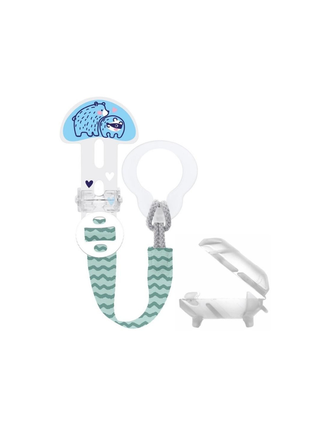 MAM Clip it! Broche Chupetero para Todo Tipo de Chupetes AzulBroche Portachupetes o Chupetero Este chupetero se adapta a todo tipo de chupetes, ya sean de botón o anilla, así como mordedores y juguetes, gracias a su anillo y lazo flexible.Con un regulador de longitud, puedes personalizar la longitud para un ajuste perfecto.Pensando en la higiene, este broche incluye una cubierta de protección para tetinas.Es adaptable a todas las tetinas de los chupetes MAM. El broche se puede lavar fácilmente con agua tibia y jabón suave.Este producto MAM está fabricado con materiales libres de BPA y BPS.
