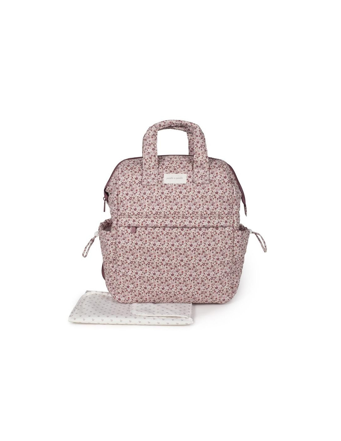Descubre la mochila maternal Cherry Flores de Pasito a Pasito, confeccionada en loneta de algodón 100% con un delicado estampado de flores. Su tratamiento waterproof la hace resistente al agua, garantizando protección y durabilidad en el día a día. Esta mochila ofrece gran capacidad y múltiples compartimentos, facilitando la organización de todo lo necesario para el bebé. Bolsillos interiores y exteriores para tenerlo todo a mano y en orden. También incorpora dos bolsillos laterales para botellas o biberones. Tiene 2 asas grandes ajustables para que puedas usarla colgada a la espalda, asas de mano y otras dos asas pequeñas para que puedas usarla colgada del carrito del bebé. Incluye un práctico cambiador portátil, permitiendo mayor comodidad en cualquier lugar. Perfecta para el uso diario, esta mochila de maternidad Pasito a Pasito combina estilo y funcionalidad, siendo un imprescindible para mamás que buscan calidad y diseño. Está fabricado con materiales de gran calidad, libres de colorantes azoicos, ftalatos y sustancias nocivas para la salud. Además, se puede lavar a mano o a máquina a temperaturas de hasta 30º. Los productos para bebé de Pasito a Pasito cuentan con un diseño muy diferente a todas las demás. Sus colecciones se caracterizan por el trabajo al detallada, pensadas siempre desde un punto de vista práctico. Utilizan materiales de primera calidad para remarcar la elegancia y la armonía en cada una de sus piezas. Nuestros modelos son exclusivos y de estilo inconfundible, pensados para madres actuales que gozan de buen gusto y que aprecian los detalles tanto como nosotros. Especificaciones: Materiales: 100% algodón. Medidas: 29X40X17 cm.