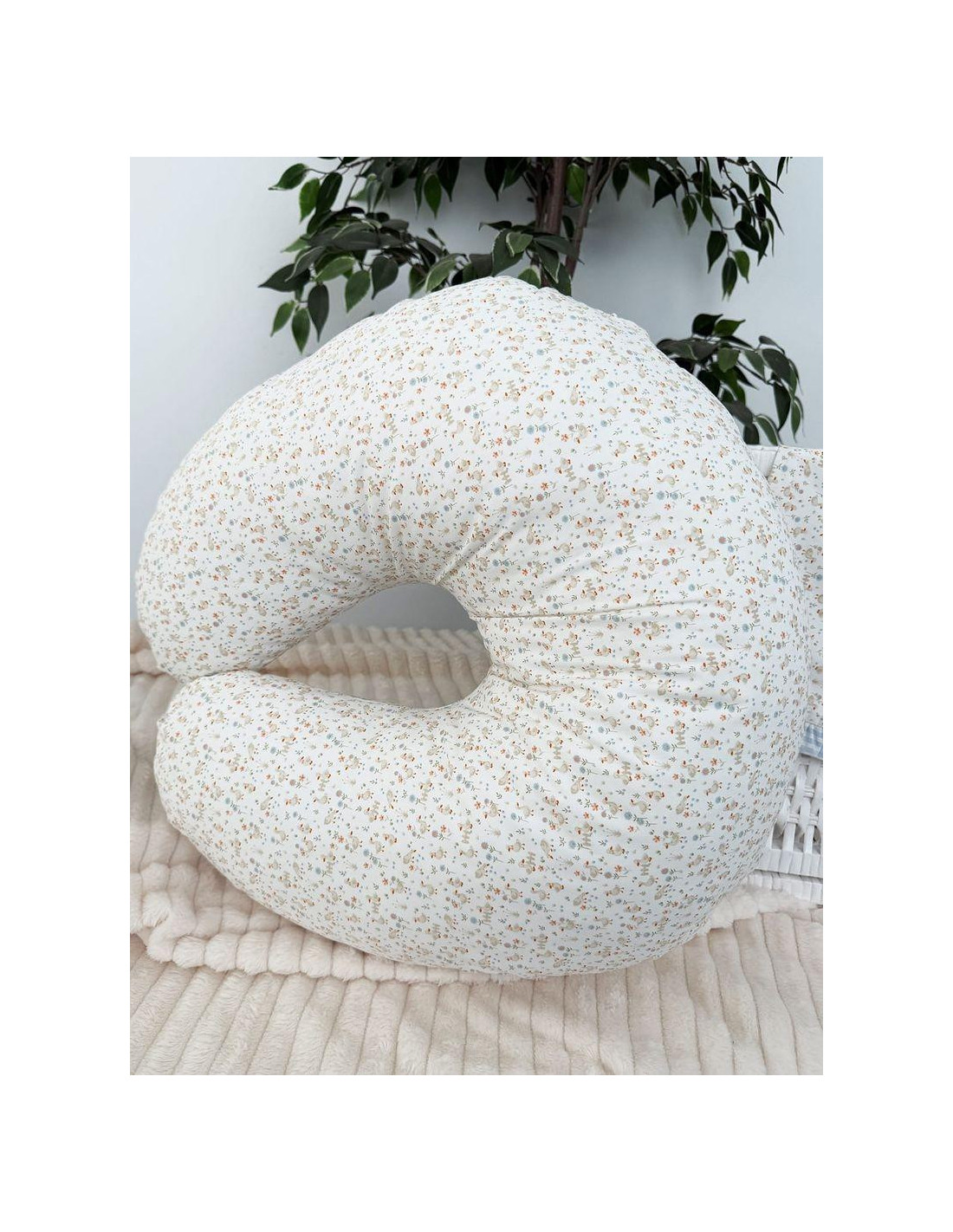 Cojín para que de comer al bebe. Lleva dos tejidos combinados, Por una cara estampado y por la otra cuadros vichi.