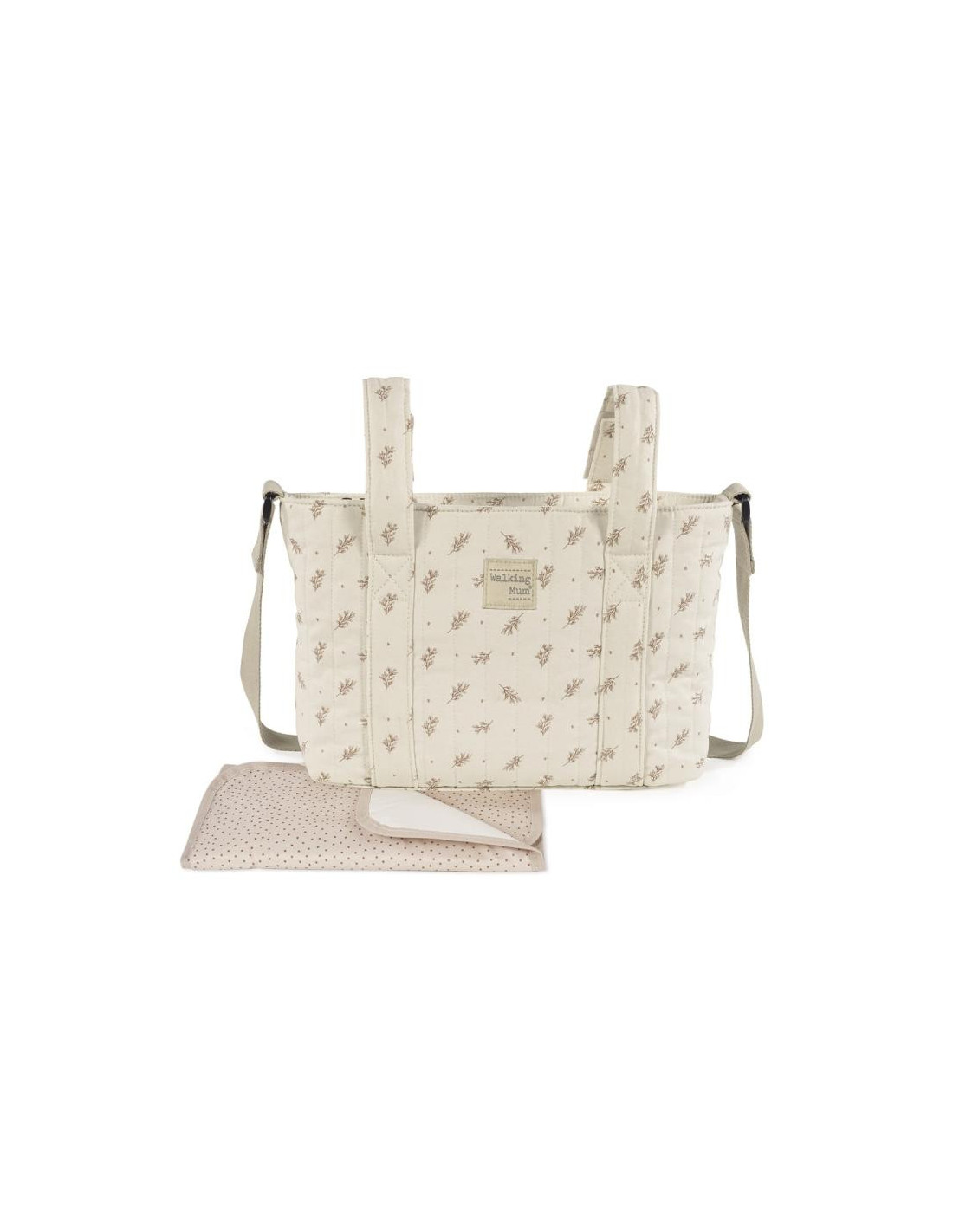 El bolso crossbody Mimosa Rosa con estampado floral para silla de paseo es un modelo muy ligero además de ser resistente y espacioso para que puedas llevar todo lo que podrías necesitar durante el paseo de tu bebé. Aparte de la gran capacidad que tiene, está distribuido para facilitarte la organización, con varios bolsillos interiores que te ayudarán a colocar todos tus complementos ordenados y así puedes ubicarlos más fácil cuando vayas a usarlos. Dispone de un bolsillo plastificado interior para la ropa húmeda, un bolsillo térmico interior y dos bolsillos laterales. Incluye cambiador. Su diseño moderno y casual lo hacen perfecto para usar a diario y combinar con tus looks casuales o deportivos. Incorpora asas cortas con las que puedes fijarla a cualquier modelo de silla de paseo y asa larga para que te la puedas colgar en el hombro. Gran calidad y mucho estilo. Fabricado en algdón 100% con un tratamiento waterproof, de fácil limpieza a mano o a máquina a 30 °C. Walking Mum protege a tu bebé utilizando los mejores tejidos, libres de colorantes azoicos y sustancias nocivas para la salud. Nuestra colección Walking Mum está diseñada con un particular sello de estilo urbano y moderno que no pasa desapercibido, para vestir diferente los paseos con tu bebé. Las bolsas de maternidad de esta línea son más sport y prácticas, especialmente pensadas en mamás y papás modernos que aprecian los diseños más actuales y en tendencia sin dejar de lado la calidad y la funcionalidad de los accesorios que complementan y hacen más cómodos todos los paseos con sus bebés. Especificaciones: Materiales: 100 % algodón con tratamiento waterproof. Medidas: 33X25X12 cm.