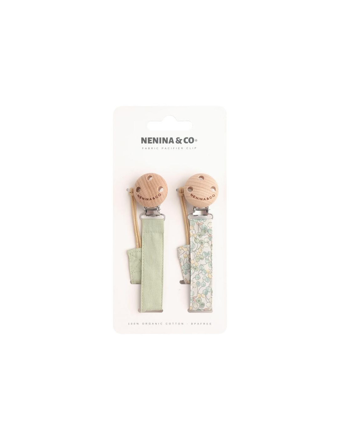 PACK 2 CADENAS DE CHUPETE TELA FLOR VERDE NENINAANDCO