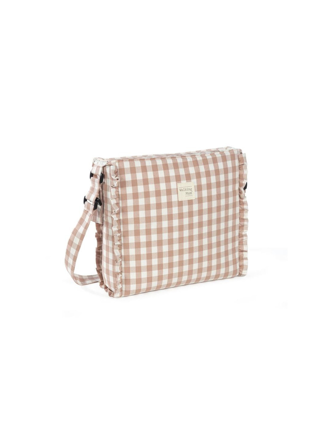 Bolso cambiador Remy en cuadro vichy XL rosa para silla de paseo que incluye cambiador para bebe. Bolsa canastilla muy ligera, resistente y de gran capacidad para llevar todo lo necesario para el paseo del bebe. Tiene multiples bolsillos para poder tener todo ordenado y a mano. La bolsa tiene un sistema universal de fijación, con 2 asas cortas ajustables que facilita la colocación en cualquier modelo de silla de paseo. También incorpora una asa larga para poder colgarla en el hombro. Gran calidad y mucho estilo. Fabricada en un material resistente y de fácil limpieza. Walking Mum protege a tu bebé utilizando los mejores tejidos, libres de colorantes azoicos y sustancias nocivas para la salud. Nuestra colección Walking Mum está diseñada con un particular sello de estilo urbano y moderno que no pasa desapercibido, para vestir diferente los paseos con tu bebé. Las bolsas de maternidad de esta línea son más sport y prácticas, especialmente pensadas en mamás y papás modernos que aprecian los diseños más actuales y en tendencia sin dejar de lado la calidad y la funcionalidad de los accesorios que complementan y hacen más cómodos todos los paseos con sus bebés. Especificaciones: Materiales: 100% algodón. Color: Rosa. Medidas: 32X12X32 cm.