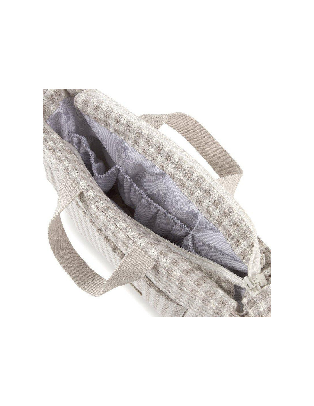 El Bolso Maternal Pack de Cambrass de gran amplitud con capacidad para guardar todo lo que necesitas para tu bebe. Su sistema de asas cortas lo hace útil tanto como bolso de mano o maletín así como de bandolera o incluso para el carro, ya que el asa larga dispone de clips para poder colgar del cochecito. Tanto el tejido exterior como el interior (resinado) con el que está confeccionado el bolso cuentan con un acabado impermeable que sumado a su base rígida aporta estabilidad evitando que pierda su forma tanto lleno como vacío e incluso después del lavado. Este bolso cuenta con prácticos bolsillos interiores y exteriores para una perfecta organización de los accesorios. El cierre del bolso es con cremallera YKK de larga duración.