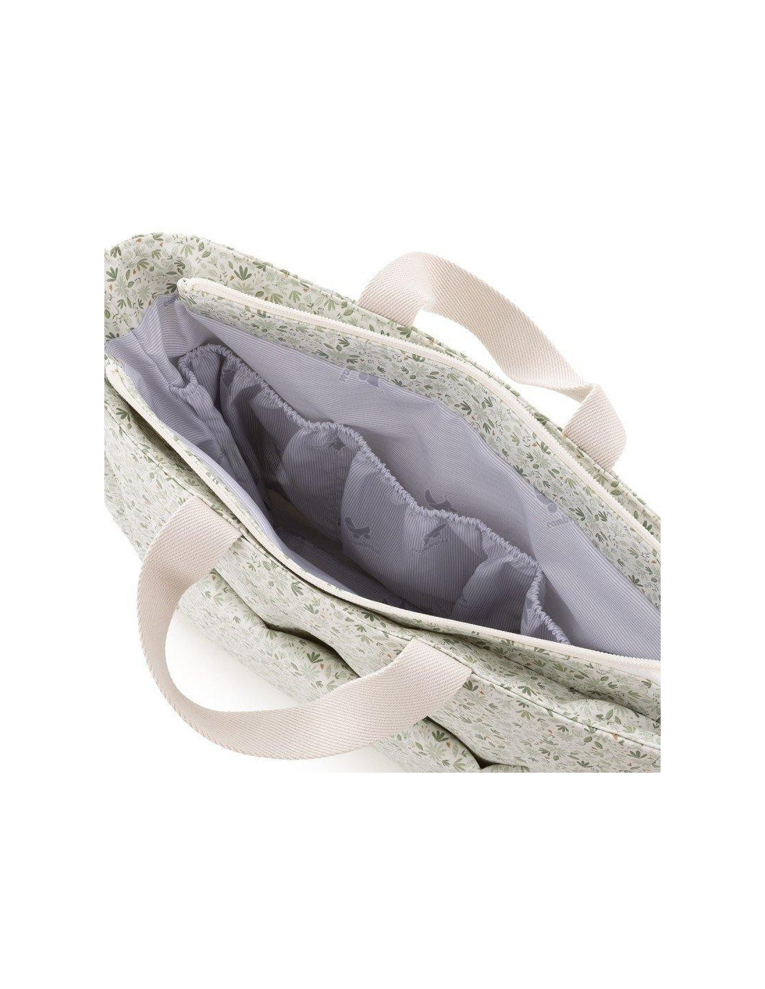 El Bolso Maternal Pack de Cambrass de gran amplitud con capacidad para guardar todo lo que necesitas para tu bebe. Su sistema de asas cortas lo hace útil tanto como bolso de mano o maletín así como de bandolera o incluso para el carro, ya que el asa larga dispone de clips para poder colgar del cochecito. El tejido interior (resinado) con el que está confeccionado el bolso cuenta con un acabado impermeable que sumado a su base rígida aporta estabilidad evitando que pierda su forma tanto lleno como vacío e incluso después del lavado. Este bolso cuenta con prácticos bolsillos interiores y exteriores para una perfecta organización de los accesorios. El cierre del bolso es con cremallera YKK de larga duración.