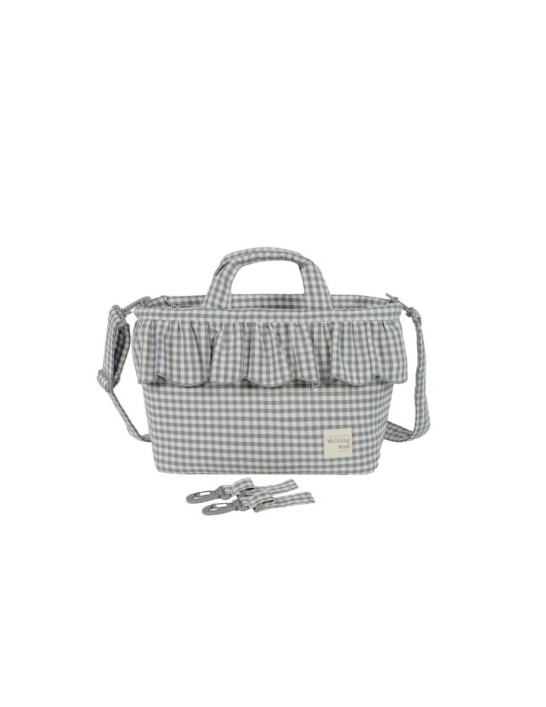 Bolso cambiador Praliné Vichy Matcha para silla de paseo que incluye cambiador para bebe. Bolsa canastilla muy ligera, resistente y de gran capacidad para llevar todo lo necesario para el paseo del bebe. Tiene multiples bolsillos para poder tener todo ordenado. En el interior incopora un bolsillo plastificado para la ropa húmeda, un bolsillo térmico para biberones y dos bolsillos para lo que necesites tener más a mano. La bolsa tiene un sistema universal de fijación, con 2 asas cortas ajustables que facilita la colocación en cualquier modelo de silla de paseo. También incorpora una asa larga para poder colgarla en el hombro y asas cortas para cogerla con la mano. Gran calidad y mucho estilo. Fabricada con un tratamiento water resistant, de fácil limpieza a mano o a máquina a 30 °C. Walking Mum protege a tu bebé utilizando los mejores tejidos, libres de colorantes azoicos y sustancias nocivas para la salud. Nuestra colección Walking Mum está diseñada con un particular sello de estilo urbano y moderno que no pasa desapercibido, para vestir diferente los paseos con tu bebé. Las bolsas de maternidad de esta línea son más sport y prácticas, especialmente pensadas en mamás y papás modernos que aprecian los diseños más actuales y en tendencia sin dejar de lado la calidad y la funcionalidad de los accesorios que complementan y hacen más cómodos todos los paseos con sus bebés. Especificaciones: Materiales: 65% algodón/35% poliéster con tratamiento water resistant. Medidas: 44x29x12 cm.