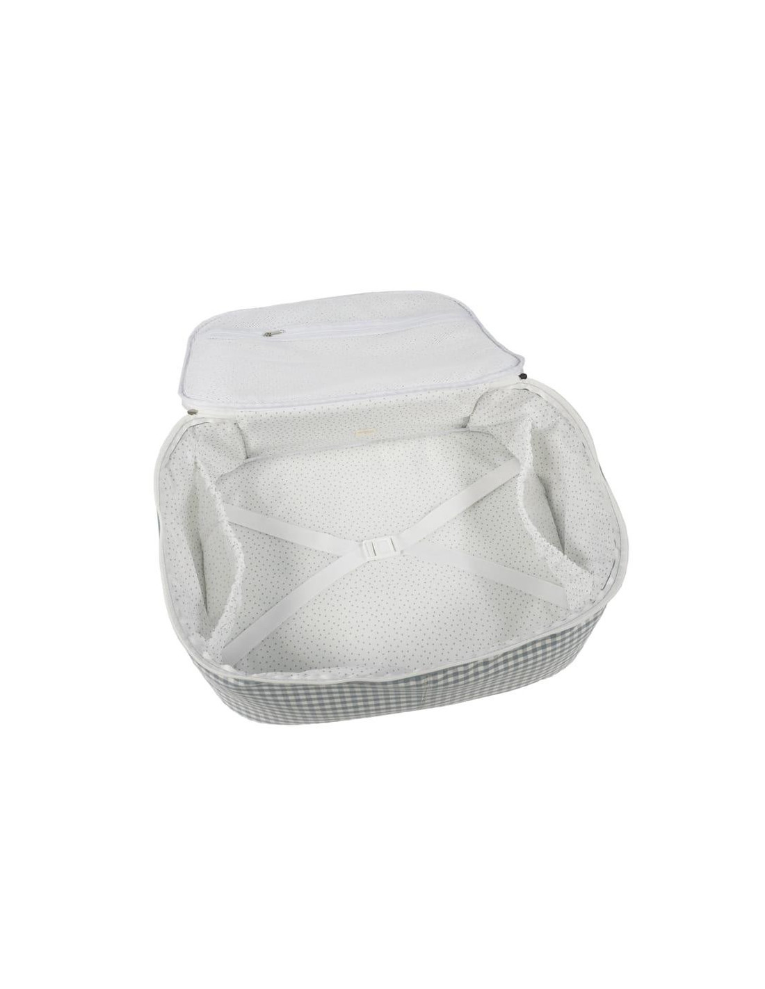 La maleta de bebé Praliné Vichy Matcha es un bolso especialmente diseñado para el momento más importante del embarazo, que es la llegada de tu bebé, momento en el que hay un montón de cosas que preparar. Por esto necesitas un espacio cómodo para transportar todo lo necesario para ti, el padre y el niño. Esta maleta de bebé es el modelo perfecto para cubrir todo lo que no puede faltar en este día tan especial. Es cómoda, ligera y manejable con dimensiones rectangulares y apertura práctica para tener todas tus necesidades cubiertas. Cuenta con cierre seguro de cremallera en ambas direcciones que facilitan su apertura, incluye una correa larga para llevar colgada en el hombro y asas cortas de mano. Presenta un bolsillo exterior frontal con cierre de cremallera. Además en el compartimiento interior tiene un forro a juego con gomas para contener la ropa y mantener todo en su lugar. Gran calidad y mucho estilo. Fabricado con un tratamiento water resistant, de fácil limpieza a mano o a máquina a 30 °C. Walking Mum protege a tu bebé utilizando los mejores tejidos, libres de colorantes azoicos y sustancias nocivas para la salud. Nuestra colección Walking Mum guarda toda la calidad de la marca Pasito a Pasito pero con un particular sello de estilo urbano y moderno que no pasa desapercibido, para vestir diferente los paseos con tu bebé. Las bolsas de maternidad de esta línea son más sport y prácticas, especialmente pensadas en mamás y papás modernos que aprecian los diseños más actuales y en tendencia sin dejar de lado la calidad y la funcionalidad de los accesorios que complementan y hacen más cómodos todos los paseos con sus bebés. Especificaciones: Materiales: 65% algodón/35% poliéster con tratamiento water resisant. Medidas: 49X37X17 cm.