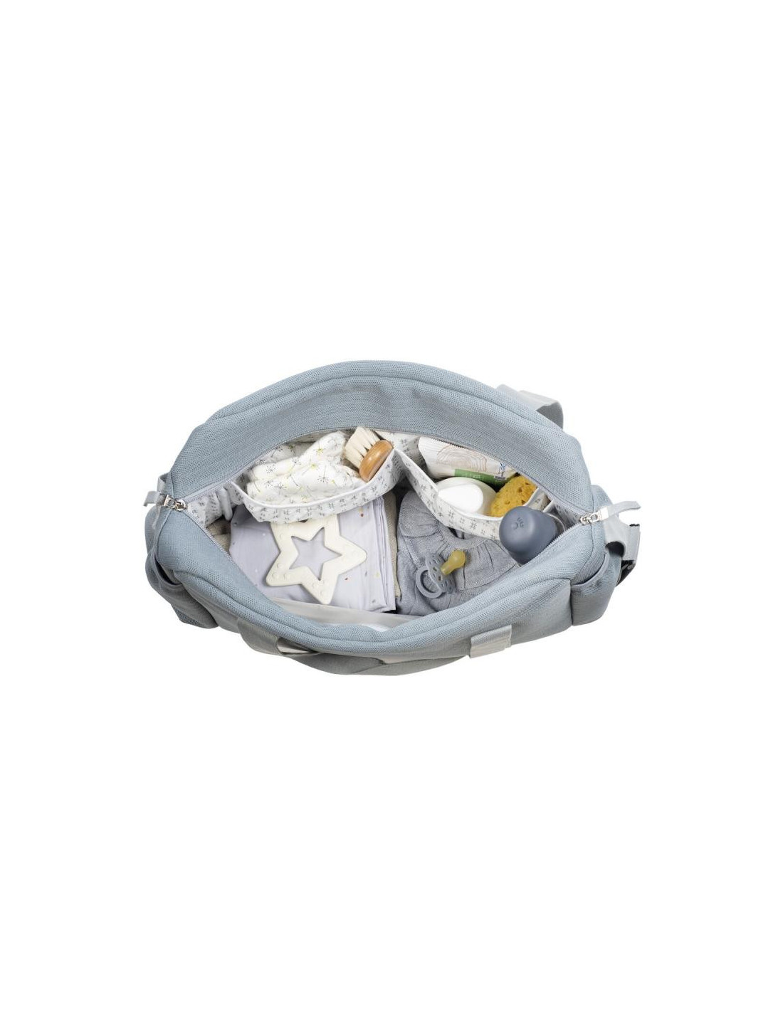 Bolso cambiador Eco Mum Cloud está fabricada con rPET (poliéster reciclado post-consumo). El rPET que utilizamos está hecho de plástico PET reciclado de botellas de agua. El uso de este material reduce el consumo de agua, el consumo de energía y la emisión de CO2. Es un bolso para silla de paseo que incluye cambiador para bebe. Bolsa canastilla muy ligera, resistente y de gran capacidad para llevar todo lo necesario para el paseo del bebe. Tiene multiples bolsillos para poder tener todo ordenado. Dispone en el exterior de dos bolsillos laterales para botellas o biberones y un bolsillo con cremallera frontal. En el interior incopora un bolsillo plastificado para la ropa húmeda, un bolsillo térmico para biberones y dos bolsillos para lo que necesites tener más a mano. La bolsa tiene un sistema universal de fijación, con 2 asas cortas ajustables que facilita la colocación en cualquier modelo de silla de paseo. También incorpora una asa larga para poder colgarla en el hombro y asas cortas para cogerla con la mano. Gran calidad y mucho estilo. Fabricada en un material resistente y de fácil limpieza. Walking Mum protege a tu bebé utilizando los mejores tejidos, libres de colorantes azoicos y sustancias nocivas para la salud. Nuestra colección Walking Mum está diseñada con un particular sello de estilo urbano y moderno que no pasa desapercibido, para vestir diferente los paseos con tu bebé. Las bolsas de maternidad de esta línea son más sport y prácticas, especialmente pensadas en mamás y papás modernos que aprecian los diseños más actuales y en tendencia sin dejar de lado la calidad y la funcionalidad de los accesorios que complementan y hacen más cómodos todos los paseos con sus bebés. Especificaciones: Materiales: Exterior 100 % poliéster recilcado (rPet) / Interior 100% algodón. Medidas: 52X31X13 cm.