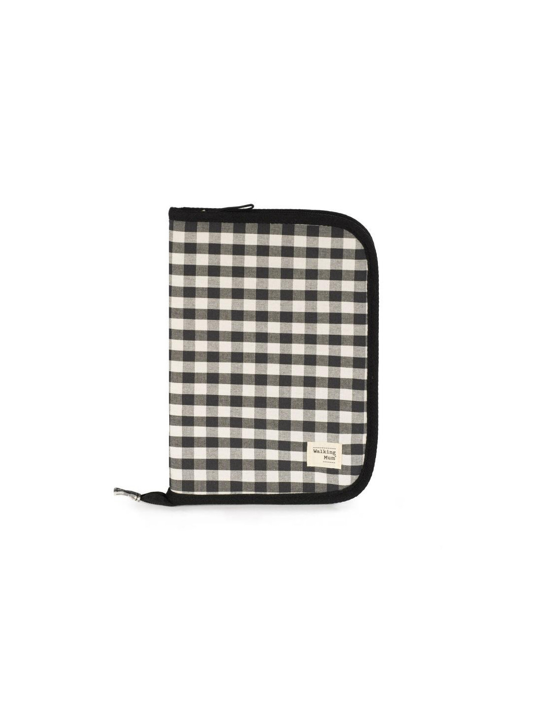 El libro de nacimiento Remy en cuadro vichy XL negro es una funcional carpeta portadocumentos de diseño a juego con la bolsa de maternidad. Un complemento indispensable para llevar contigo a todas partes que te ayudará a tener ordenada toda la documentación y papeles médicos de tu bebé (vacunas, recetas, partida de nacimiento). Esta funda portadocumentos está elaborada en tela estampada, cuenta con múltiples bolsillos plastificados distribuidos en ambos lado para organizar mejor todo. También tiene un práctico cierre de cremallera para guardar seguro el libro de Nacimiento y todos los documentos de tu bebé. Gran calidad y mucho estilo. Fabricado en un material resistente y de fácil limpieza a mano o a máquina a 30 °C. Walking Mum protege a tu bebé utilizando los mejores tejidos, libres de colorantes azoicos y sustancias nocivas para la salud. Nuestra colección Walking Mum está diseñada con un particular sello de estilo urbano y moderno que no pasa desapercibido, para vestir diferente los paseos con tu bebé. Los accesorios de esta línea son más sport y prácticos, especialmente pensadas en mamás y papás modernos que aprecian los diseños más actuales y en tendencia sin dejar de lado la calidad y la funcionalidad de los complementos que hacen más cómodos todos los paseos con sus bebés. Especificaciones: Materiales: exterior 65% algodón ? 35% poliéster / interior 100% algodón. Color: Negro. Medidas: 19 X 28 X 1 cm.