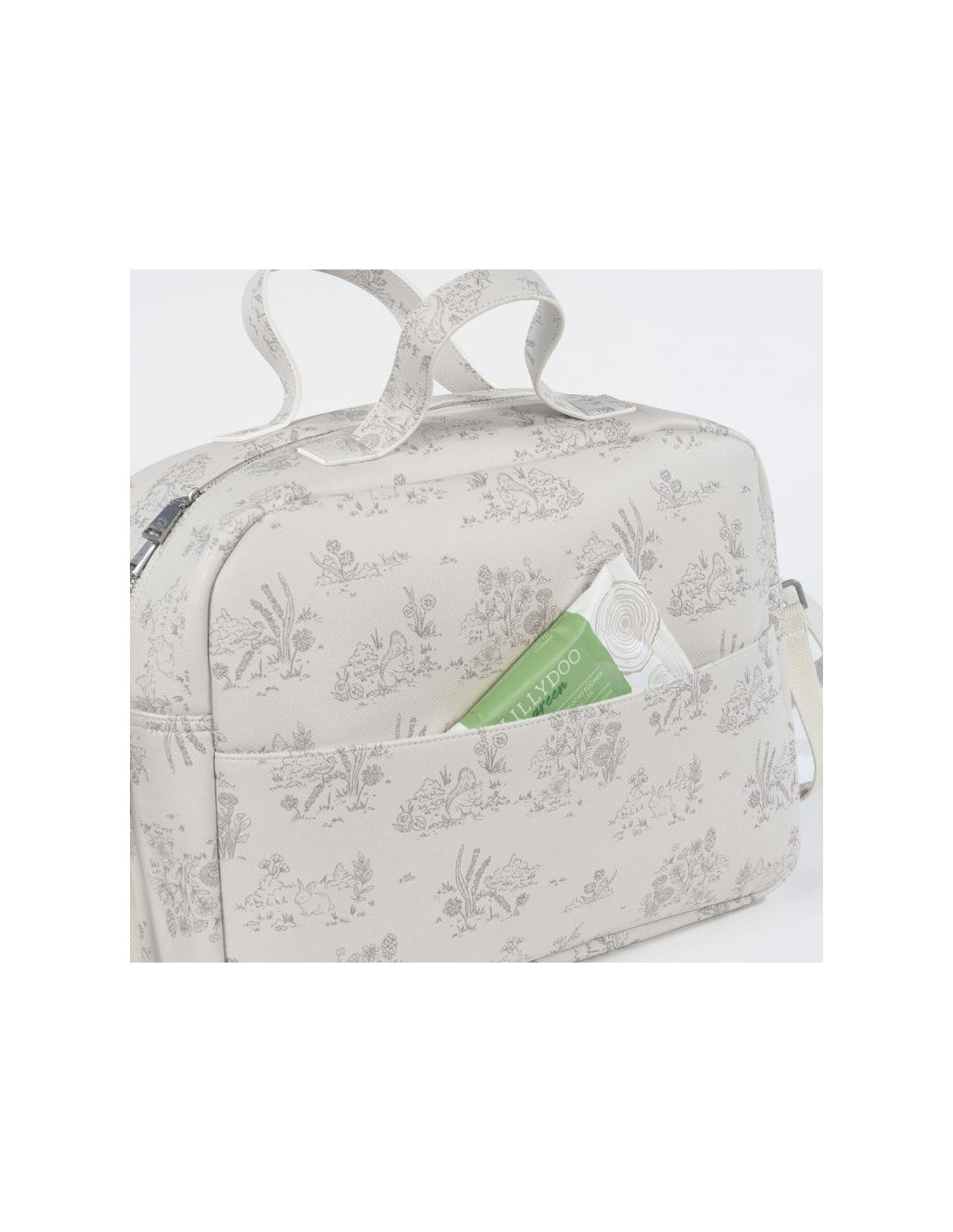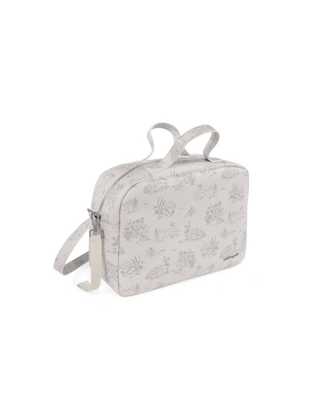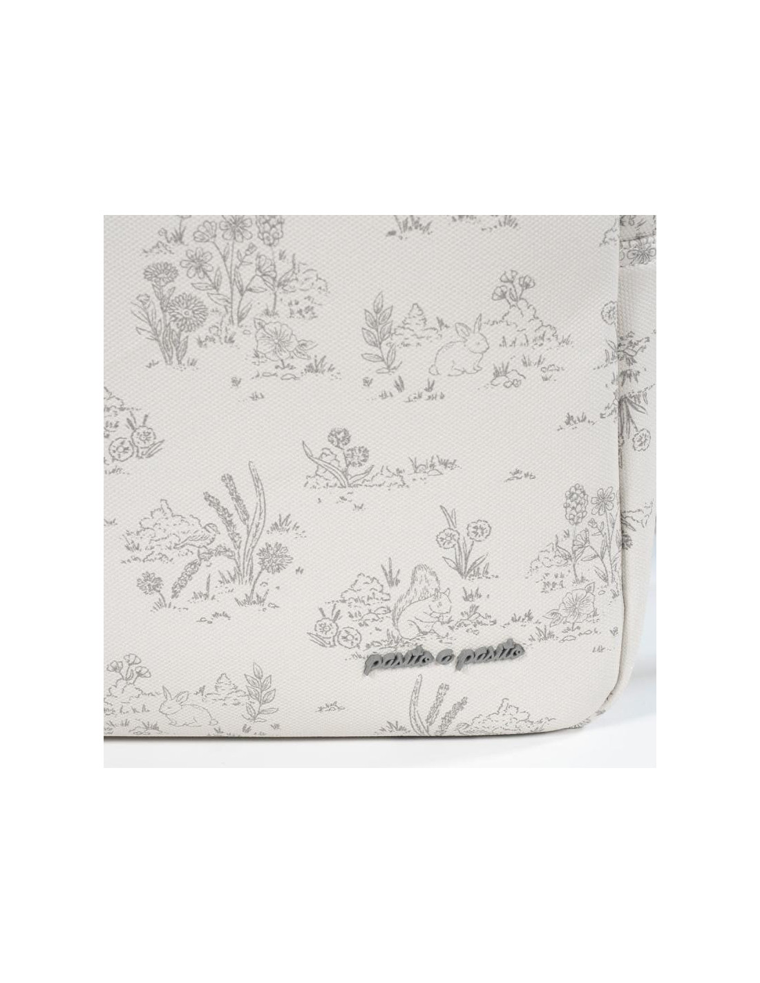 La bolsa para carrito de bebé o el bolso para silla de paseo Toile de Jouy Cream de Pasito a pasito es un modelo único, elaborado en resistente y delicada polipiel estampada para llevar todo lo que necesita tu bebé al salir de casa. Es un diseño muy elegante y práctico que ofrece gran capacidad para que puedas llevar de todo. Viene acondicionado con doble asa, una larga para colgar en el hombro y unas cortas de mano. Incluye asas adicionales universales para colgarla al cochecito. Además puedes usarla para guardar tus cosas y así evitas llevar dos bolsas al mismo tiempo. Si estás en la dulce espera puedes tenerla preparada como bolsa del bebé para el hospital. Acabados de calidad. La bolsa canastilla de bebé cuenta con un forro interior y bolsillos para colocar de forma organizada el biberón, cubiertos, toallitas, pañales, cremas y cualquier otra cosa que necesite tu hijo. Entre los bolsillos hay un bolsillo térmico para biberones y un bolsillo plastificado para la ropa mojada. También tiene un bolsillo exterior trasero. Incluye cambiador. Está fabricado con materiales de gran calidad, libres de colorantes azoicos, ftalatos y sustancias nocivas para la salud. Además se puede lavar a mano o a máquina a temperaturas de hasta 30º. Los productos para bebé de Pasito a Pasito cuentan con un diseño muy diferente a todas las demás. Sus colecciones se caracterizan por el trabajo al detallada, pensadas siempre desde un punto de vista práctico. Utilizan materiales de primera calidad para remarcar la elegancia y la armonía en cada una de sus piezas. Nuestros modelos son exclusivos y de estilo inconfundible, pensados para madres actuales que gozan de buen gusto y que aprecian los detalles tanto como nosotros. Especificaciones: Materiales: Eco-leather. Color: Cream. Medidas: 40X15X30 cm