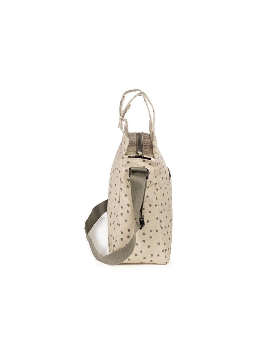 Bolso cambiador Poppy Musgo de topito para silla de paseo que incluye cambiador para bebe. Bolsa canastilla muy ligera, resistente y de gran capacidad para llevar todo lo necesario para el paseo del bebe. Tiene multiples bolsillos para poder tener todo ordenado. Dispone en el exterior de un práctico bolsillo frontal para tener a mano lo imprescindible. En el interior incopora un bolsillo plastificado para la ropa húmeda, un bolsillo térmico para biberones y dos bolsillos para lo que necesites tener más a mano. La bolsa tiene un sistema universal de fijación, con 2 asas cortas que facilita la colocación en la silla de paseo. También incorpora una asa larga para poder colgarla en el hombro. Gran calidad y mucho estilo. Fabricada en un material resistente y de fácil limpieza. Walking Mum protege a tu bebé utilizando los mejores tejidos, libres de colorantes azoicos y sustancias nocivas para la salud. Nuestra colección Walking Mum guarda toda la calidad de la marca Pasito a Pasito pero con un particular sello de estilo urbano y moderno que no pasa desapercibido, para vestir diferente los paseos con tu bebé. Las bolsas de maternidad de esta línea son más sport y prácticas, especialmente pensadas en mamás y papás modernos que aprecian los diseños más actuales y en tendencia sin dejar de lado la calidad y la funcionalidad de los accesorios que complementan y hacen más cómodos todos los paseos con sus bebés. Especificaciones: Materiales: 100% algodón plastificado. Medidas: 38X33X13 cm.