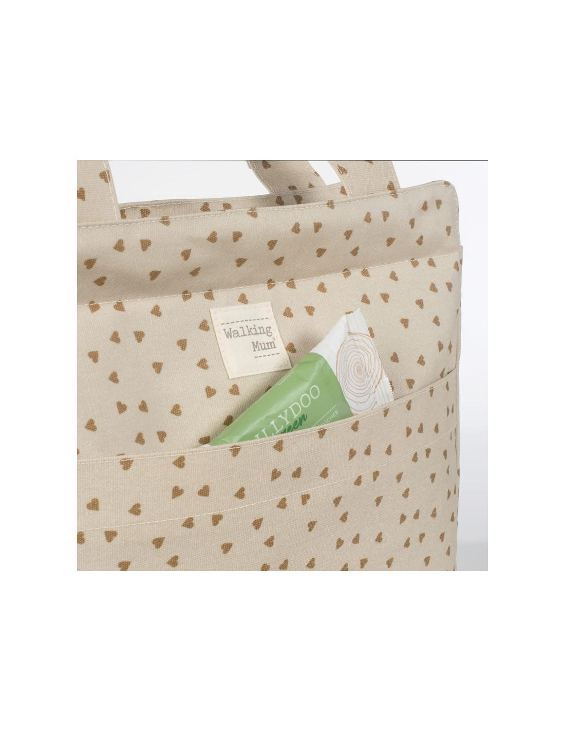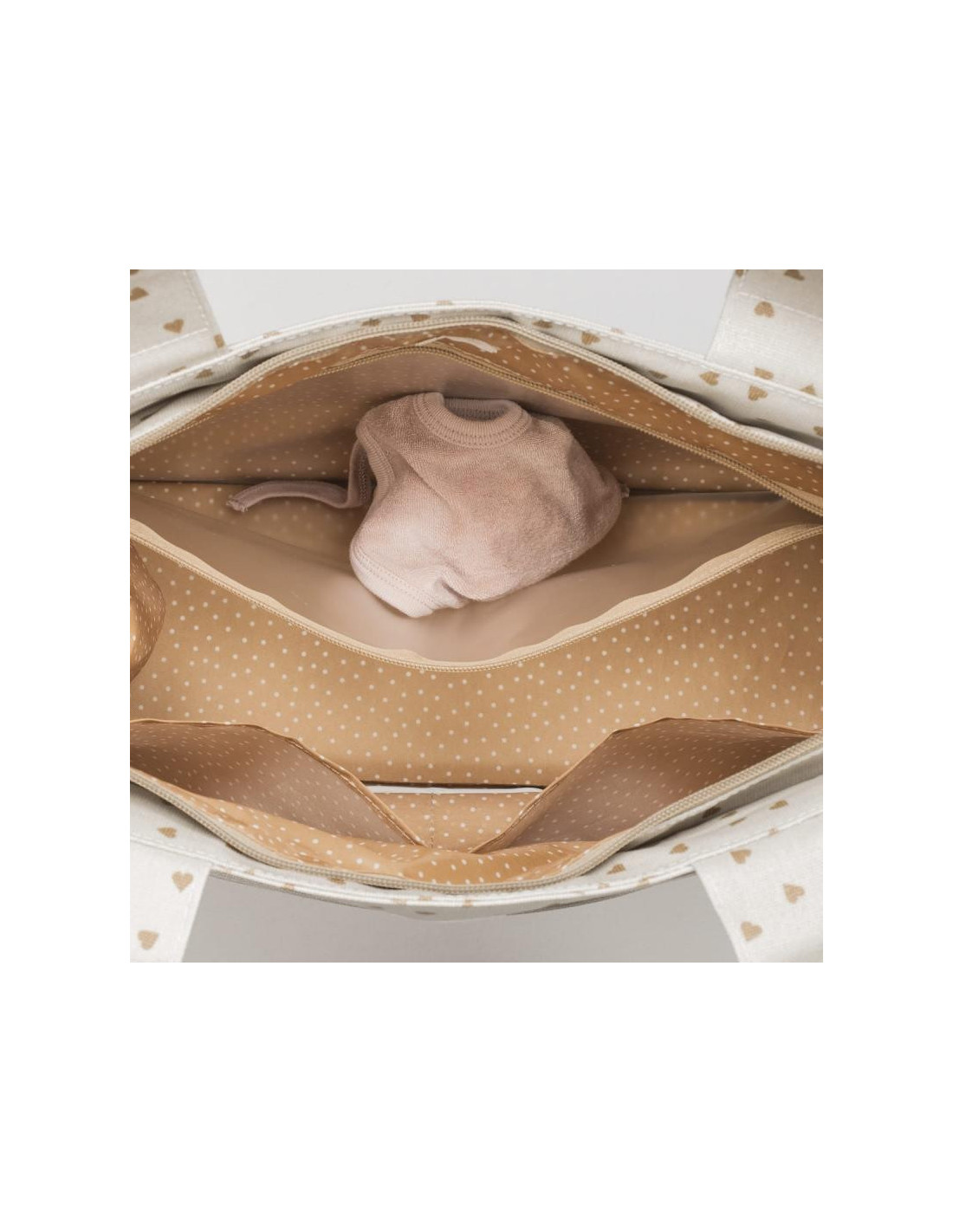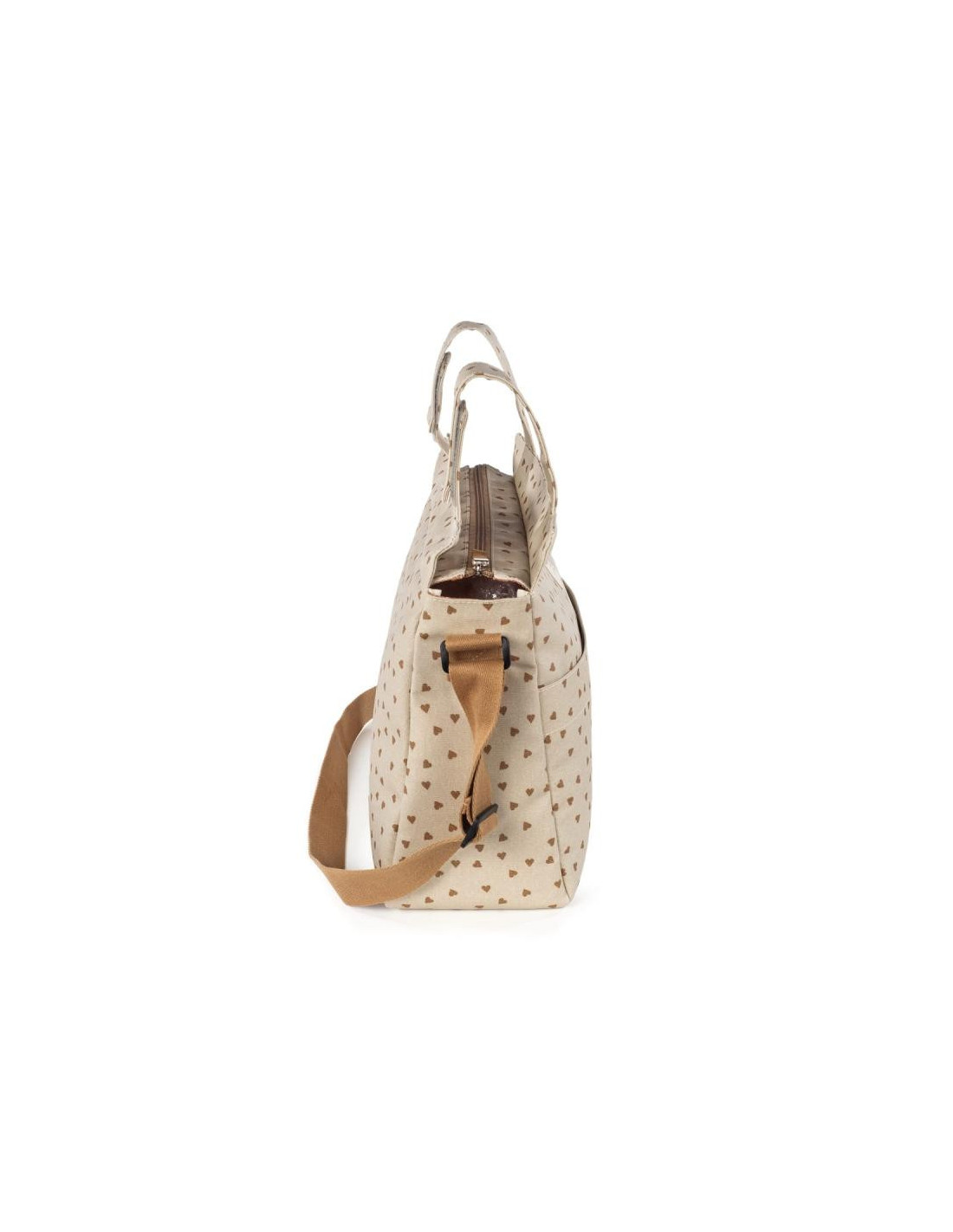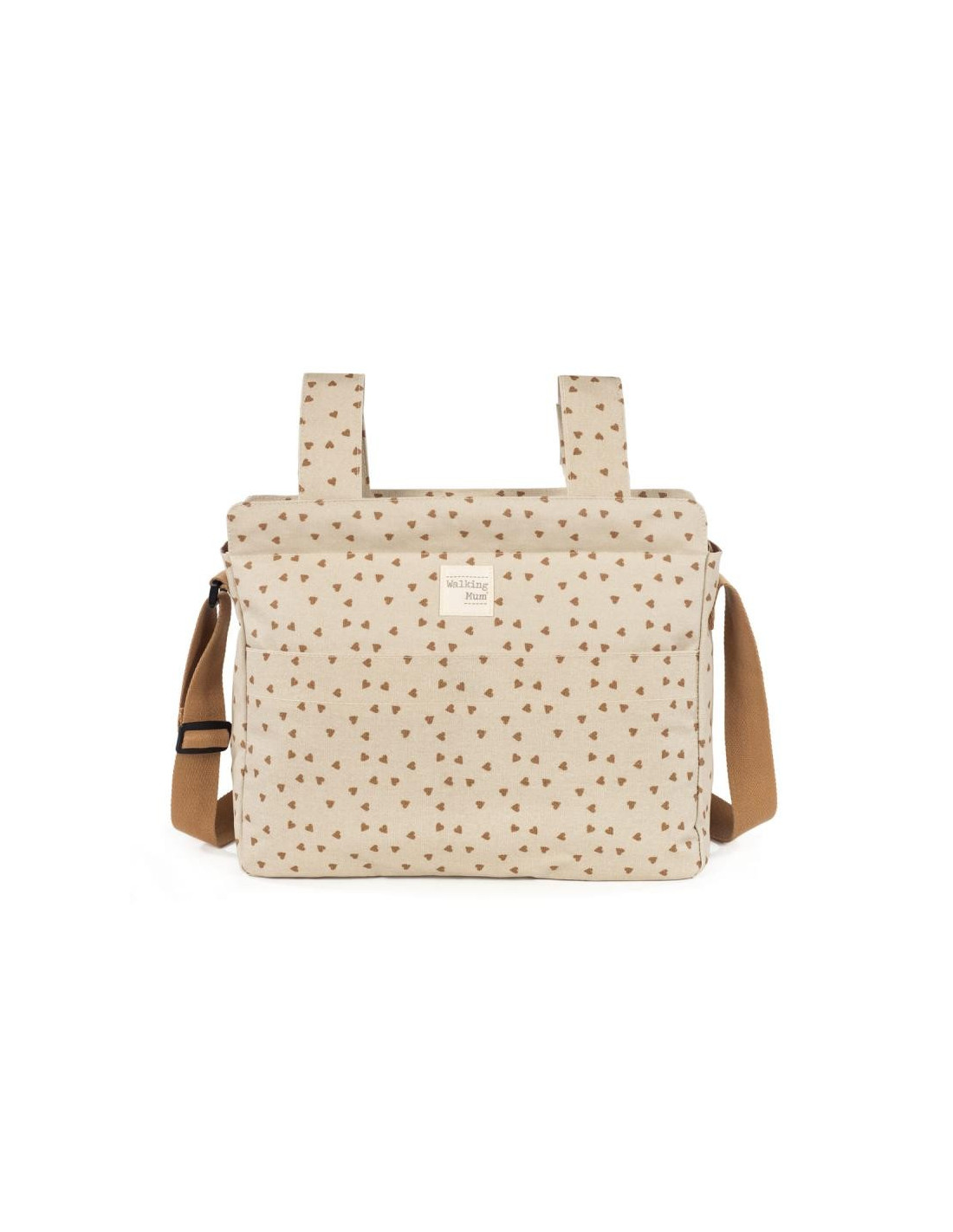 Bolso cambiador Poppy Canela con corazones para silla de paseo que incluye cambiador para bebe. Bolsa canastilla muy ligera, resistente y de gran capacidad para llevar todo lo necesario para el paseo del bebe. Tiene multiples bolsillos para poder tener todo ordenado. Dispone en el exterior de un práctico bolsillo frontal para tener a mano lo imprescindible. En el interior incopora un bolsillo plastificado para la ropa húmeda, un bolsillo térmico para biberones y dos bolsillos para lo que necesites tener más a mano. La bolsa tiene un sistema universal de fijación, con 2 asas cortas que facilita la colocación en la silla de paseo. También incorpora una asa larga para poder colgarla en el hombro. Gran calidad y mucho estilo. Fabricada en un material resistente y de fácil limpieza. Walking Mum protege a tu bebé utilizando los mejores tejidos, libres de colorantes azoicos y sustancias nocivas para la salud. Nuestra colección Walking Mum guarda toda la calidad de la marca Pasito a Pasito pero con un particular sello de estilo urbano y moderno que no pasa desapercibido, para vestir diferente los paseos con tu bebé. Las bolsas de maternidad de esta línea son más sport y prácticas, especialmente pensadas en mamás y papás modernos que aprecian los diseños más actuales y en tendencia sin dejar de lado la calidad y la funcionalidad de los accesorios que complementan y hacen más cómodos todos los paseos con sus bebés. Especificaciones: Materiales: 100% algodón plastificado. Medidas: 38X33X13 cm.