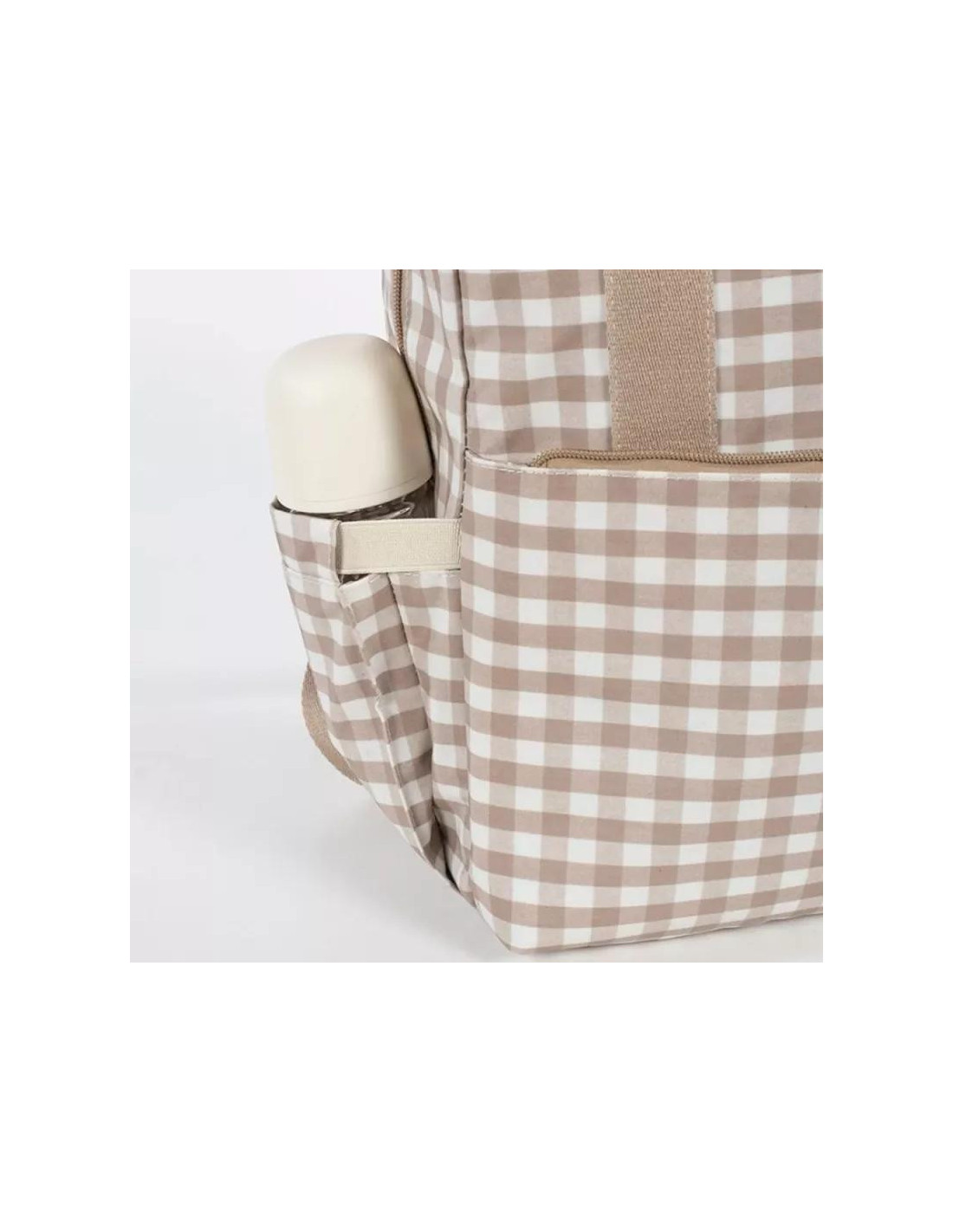 Tiene bolsillos para guardar los biberones y mantenerlos seguros, bolsillos para colocar cubiertos, para las toallitas húmedas, también tiene un funda para la botella de agua y otros más.