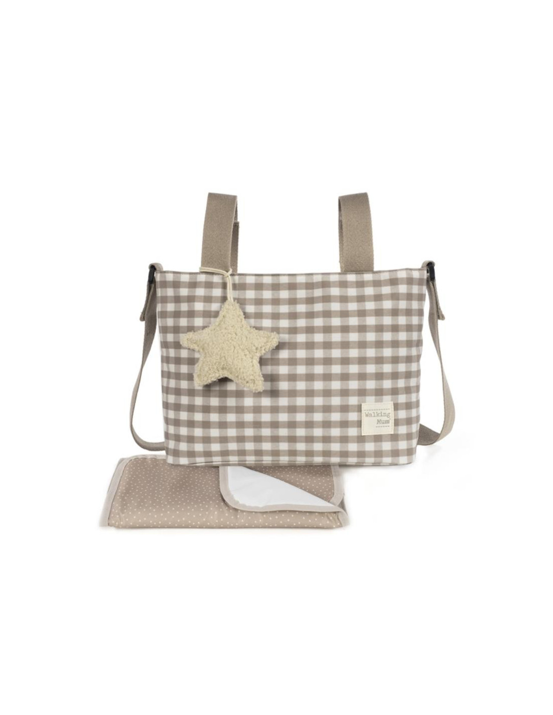 Incluye asas para colgar en el cochecito y asa larga para colgar en el hombro.
