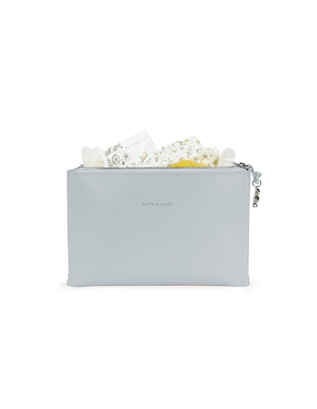 El neceser de bebé Icon Sky de Pasito a pasito es un bolso pequeño especialmente pensado para llevar todos los productos de aseo de nuestro bebé al salir de casa. Es un modelo único con mucho estilo para adecuarse a lo que necesitas. Está elaborado en resistente y suave polipiel y com una forma para acomodar fácilmente en el bolso canastilla a un lado. Es un diseño bonito, simple y cómodo que ofrece un espacio pequeño pero preciso para llevar justo lo que necesitas para la higiene de tu bebé, peine, lociones y otros objetos que por ser tan pequeños a veces se pierden dentro del bolso canastilla. Cuenta con un cierre de cremallera de fácil apertura. Acabados de calidad. Está fabricado con materiales de gran calidad, libres de colorantes azoicos, ftalatos y sustancias nocivas para la salud. Además se puede lavar a mano o a máquina a temperaturas de hasta 30º. Los productos para bebé de Pasito a Pasito cuentan con un diseño muy diferente a todas las demás. Sus colecciones se caracterizan por el trabajo al detallada, pensadas siempre desde un punto de vista práctico. Utilizan materiales de primera calidad para remarcar la elegancia y la armonía en cada una de sus piezas. Nuestros modelos son exclusivos y de estilo inconfundible, pensados en madres actuales que gozan de buen gusto y que aprecian los detalles tanto como nosotros. Especificaciones: Materiales: Eco-leather. Color: Azul. Medidas: 21X18X8 cm.