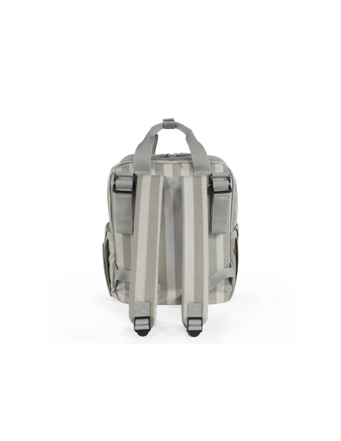 Una bolsa canastilla y mochila al mismo tiempo, muy moderna y urbana, ideal para llevar tus cosas y las de tu bebé, con mucho estilo, a todos sus paseos. La bolsa Sintra de rayas verdes para silla de paseo es un modelo multifunción muy ligero, resistente y de gran capacidad para llevar todo lo necesario en el paseo del bebé. Incluye un charm en forma de corazón donde puedes bordar el nombre de tu bebé para personalizar el bolso. Su esquema ofrece múltiples bolsillos exteriores e interiores para poder tener todo ordenado y a mano. Tiene bolsillos para guardar los biberones y mantenerlos seguros, elásticos para colocar cubiertos, para las toallitas húmedas