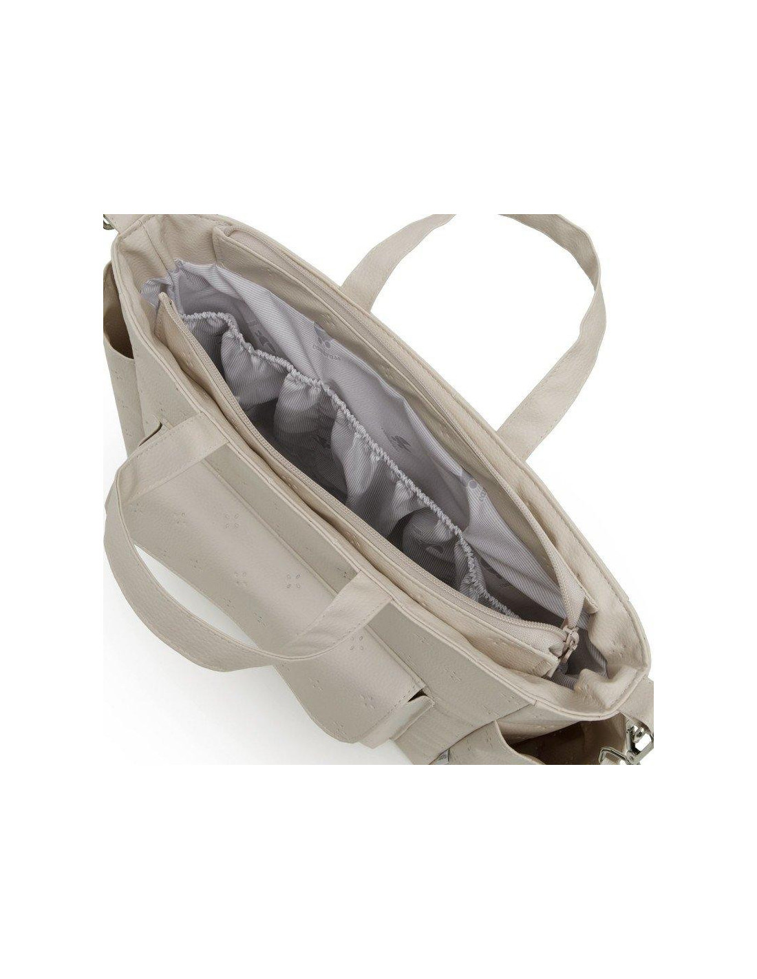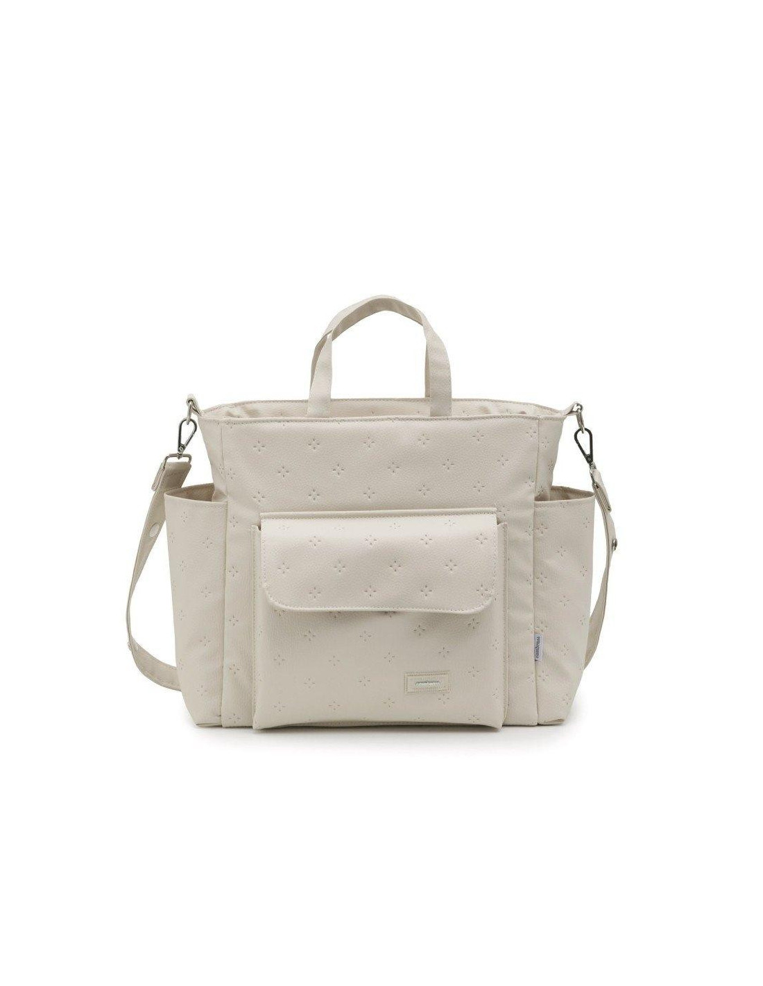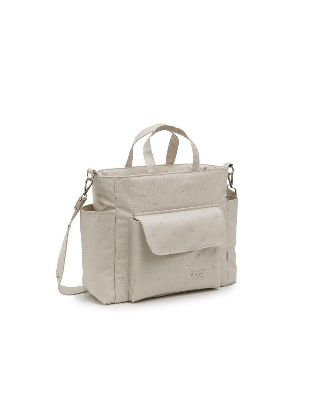El Bolso Maternal Pack de Cambrass de gran amplitud con capacidad para guardar todo lo que necesitas para tu bebe. Su sistema de asas cortas lo hace útil tanto como bolso de mano o maletín así como de bandolera o incluso para el carro, ya que el asa larga dispone de clips para poder colgar del cochecito. Tanto el tejido exterior como el interior (resinado) con el que está confeccionado el bolso cuentan con un acabado impermeable que sumado a su base rígida aporta estabilidad evitando que pierda su forma tanto lleno como vacío e incluso después del lavado. Este bolso cuenta con prácticos bolsillos interiores y exteriores para una perfecta organización de los accesorios. El cierre del bolso es con cremallera YKK de larga duración.