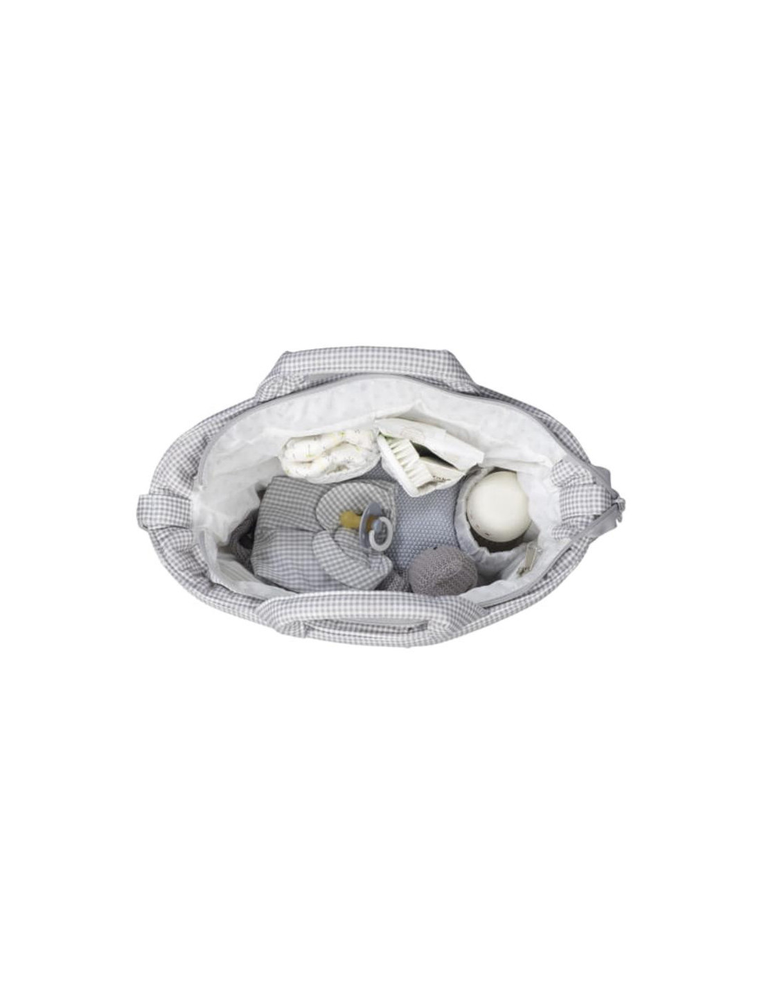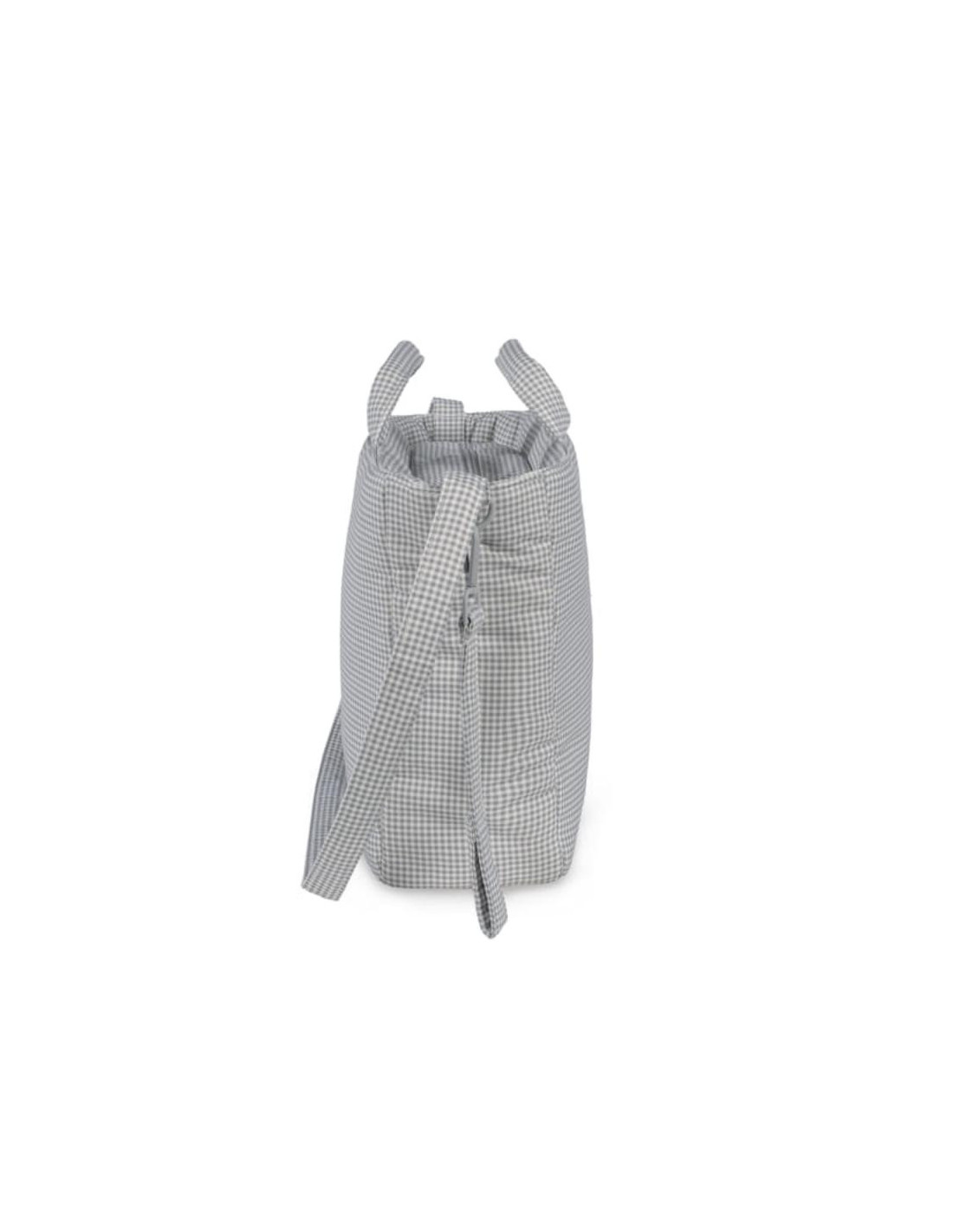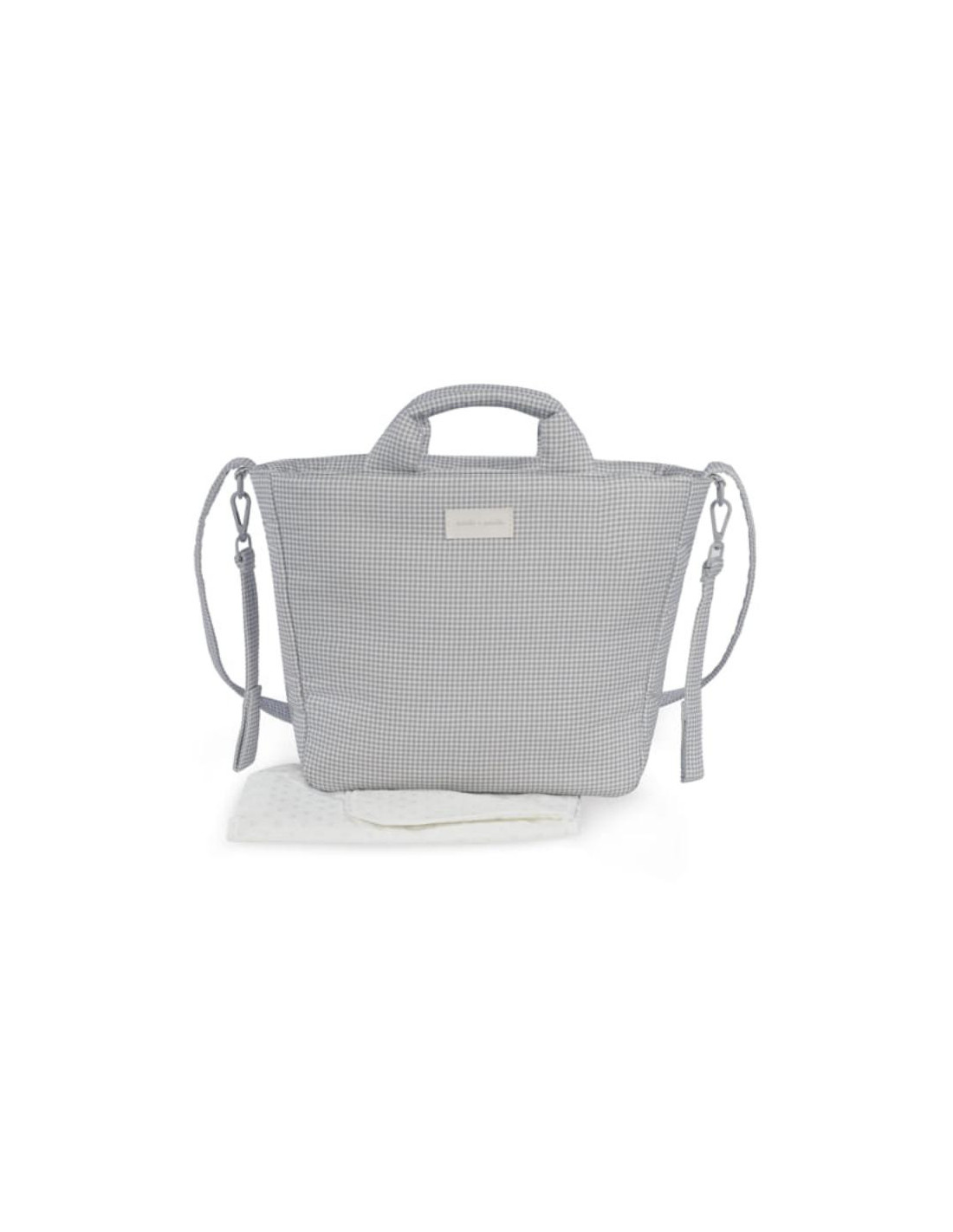 La bolsa para carrito de bebé o el bolso para silla de paseo Little Bloom Flor gris de Pasito a pasito es un modelo único, elaborado en loneta de algodón 100% con un delicado estampado de flores. Su tratamiento water resistant la hace resistente al agua, garantizando protección y durabilidad en el día a día. Es un diseño muy elegante y práctico que ofrece gran capacidad para que puedas llevar de todo. Viene acondicionado con doble asa, una larga para colgar en el hombro y unas cortas de mano. Incluye asas adicionales universales para colgarla al cochecito. Además, puedes usarla para guardar tus cosas y así evitas llevar dos bolsas al mismo tiempo. Si estás en la dulce espera puedes tenerla preparada como bolsa del bebé para el hospital. Acabados de calidad. La bolsa canastilla de bebé cuenta con un forro interior y bolsillos para colocar de forma organizada el biberón, cubiertos, toallitas, pañales, cremas y cualquier otra cosa que necesite tu hijo. Entre los bolsillos hay un bolsillo térmico para biberones y un bolsillo plastificado para la ropa mojada. Incluye cambiador. Está fabricado con materiales de gran calidad, libres de colorantes azoicos, ftalatos y sustancias nocivas para la salud. Además, se puede lavar a mano o a máquina a temperaturas de hasta 30º. Los productos para bebé de Pasito a Pasito cuentan con un diseño muy diferente a todas las demás. Sus colecciones se caracterizan por el trabajo al detallada, pensadas siempre desde un punto de vista práctico. Utilizan materiales de primera calidad para remarcar la elegancia y la armonía en cada una de sus piezas. Nuestros modelos son exclusivos y de estilo inconfundible, pensados para madres actuales que gozan de buen gusto y que aprecian los detalles tanto como nosotros. Especificaciones: Materiales: 100% algodón. Medidas: 37X30X12 cm.