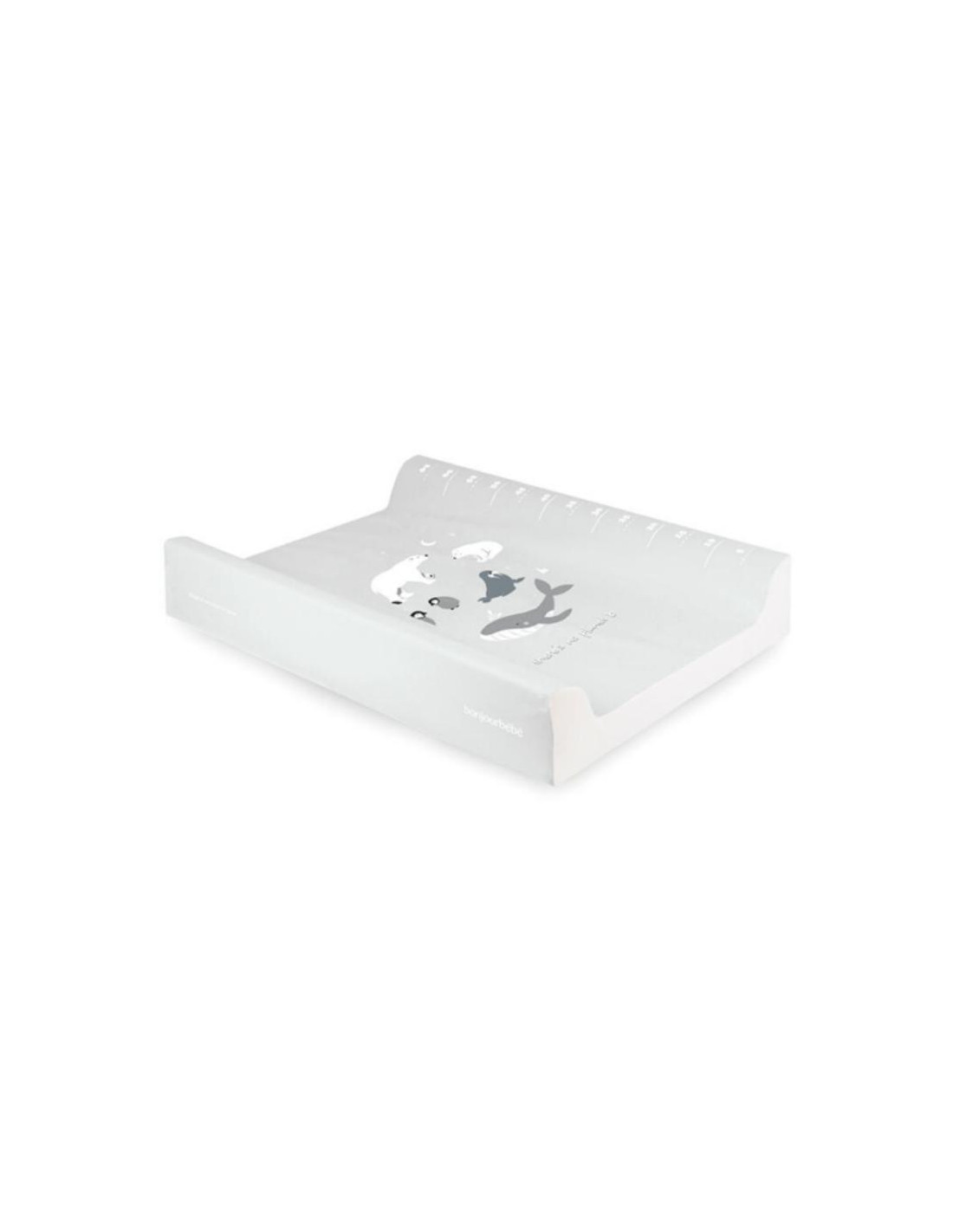 Cambiador plastificado estampado con medidor para que puedas medir a tu bebé. Podrás usarlo en cualquier superficie lisa y adaptarlo a una cómoda.