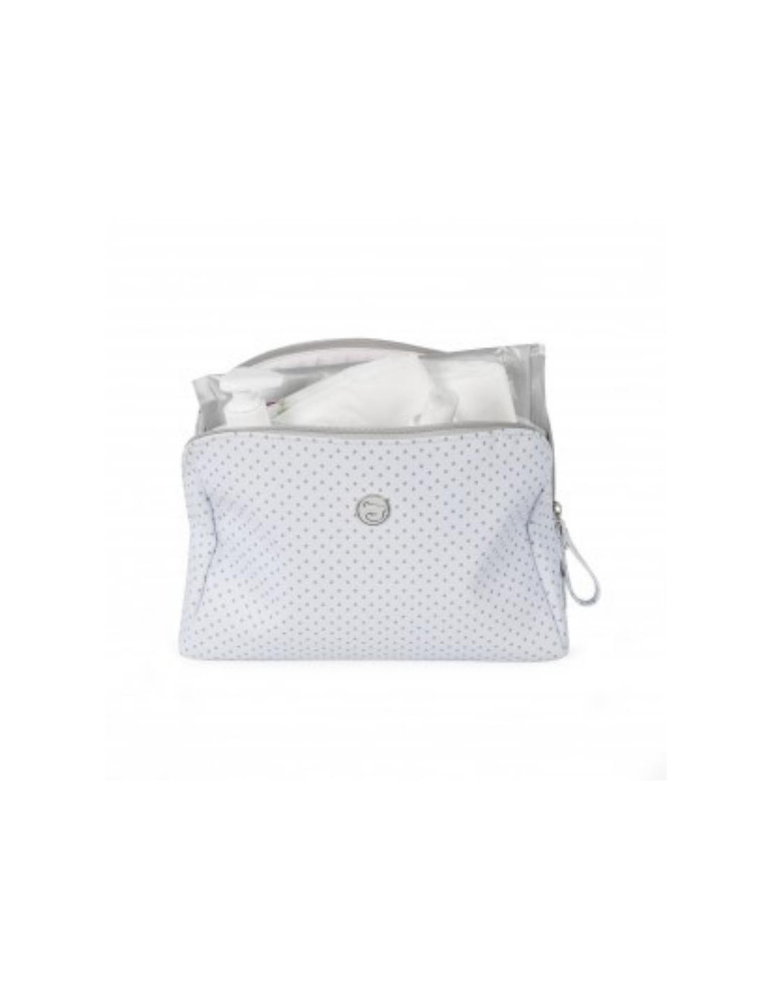 eceser en polipiel con flores rosa. Pequeño y práctico para llevar todos los productos de aseo del bebé.
