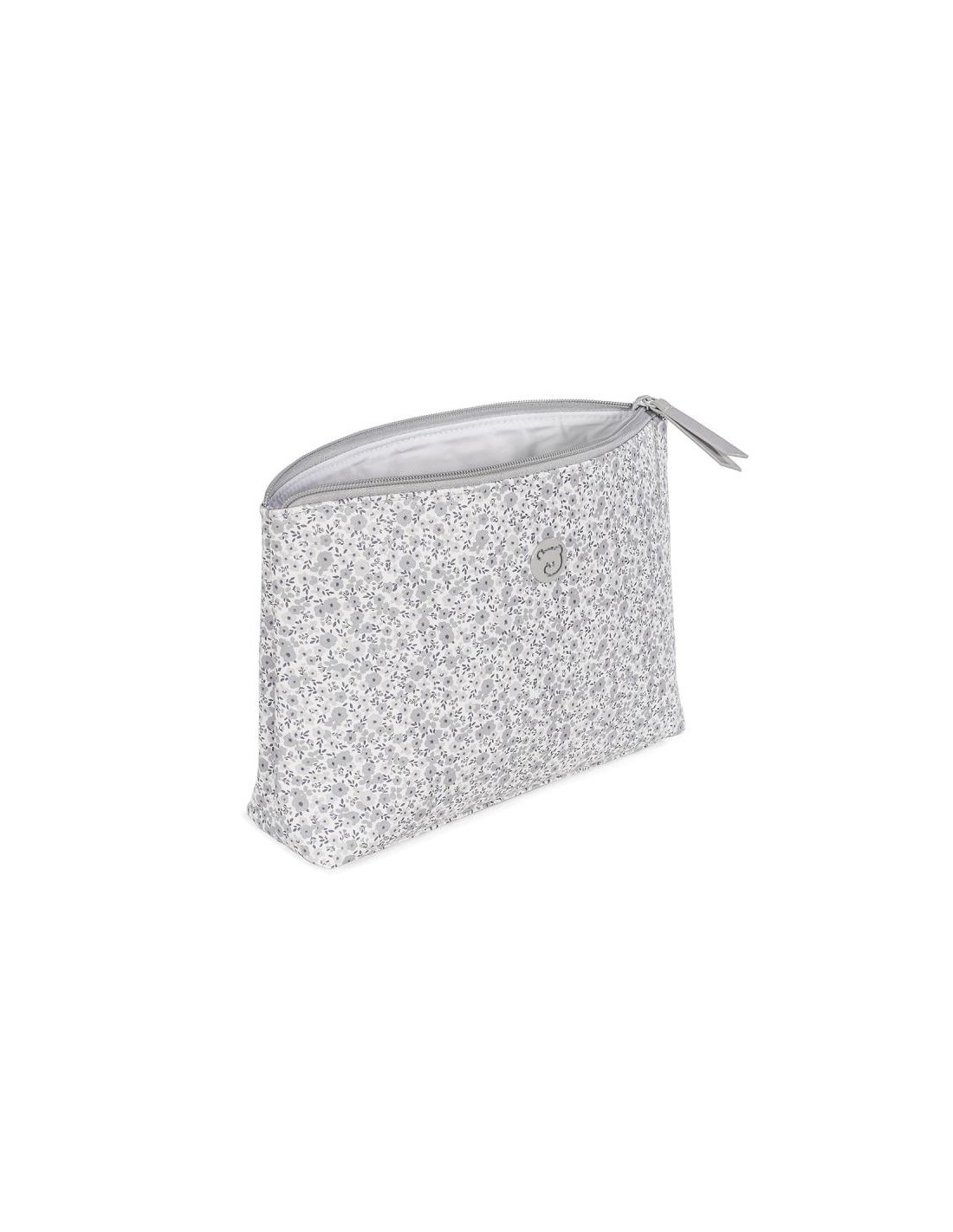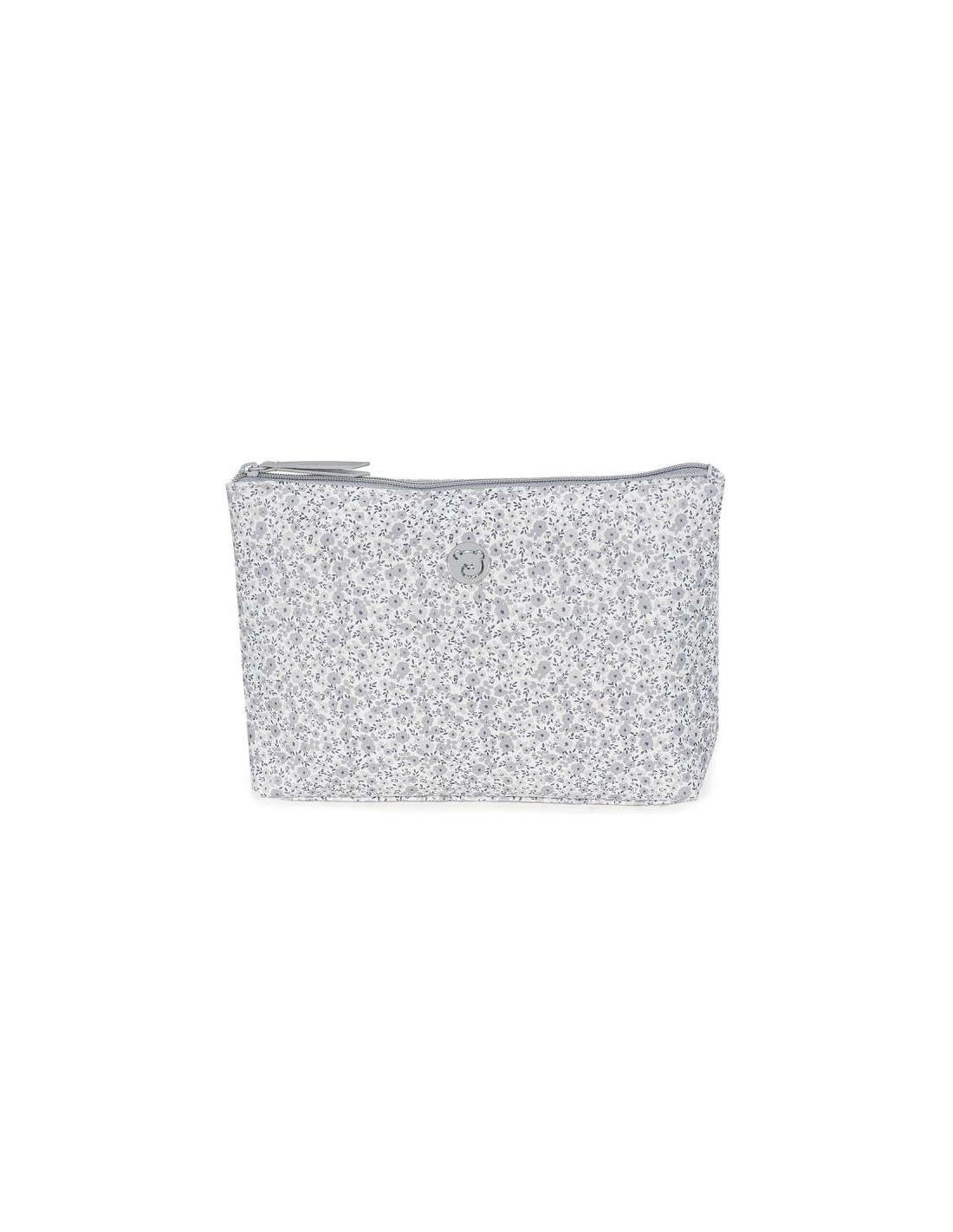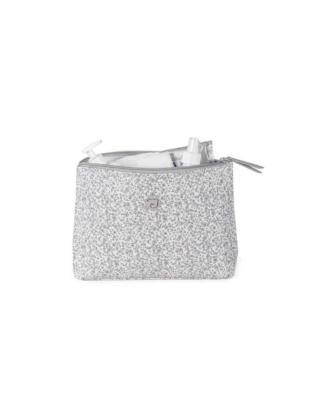 Neceser Flower Mellow en polipiel impresa con flores gris.