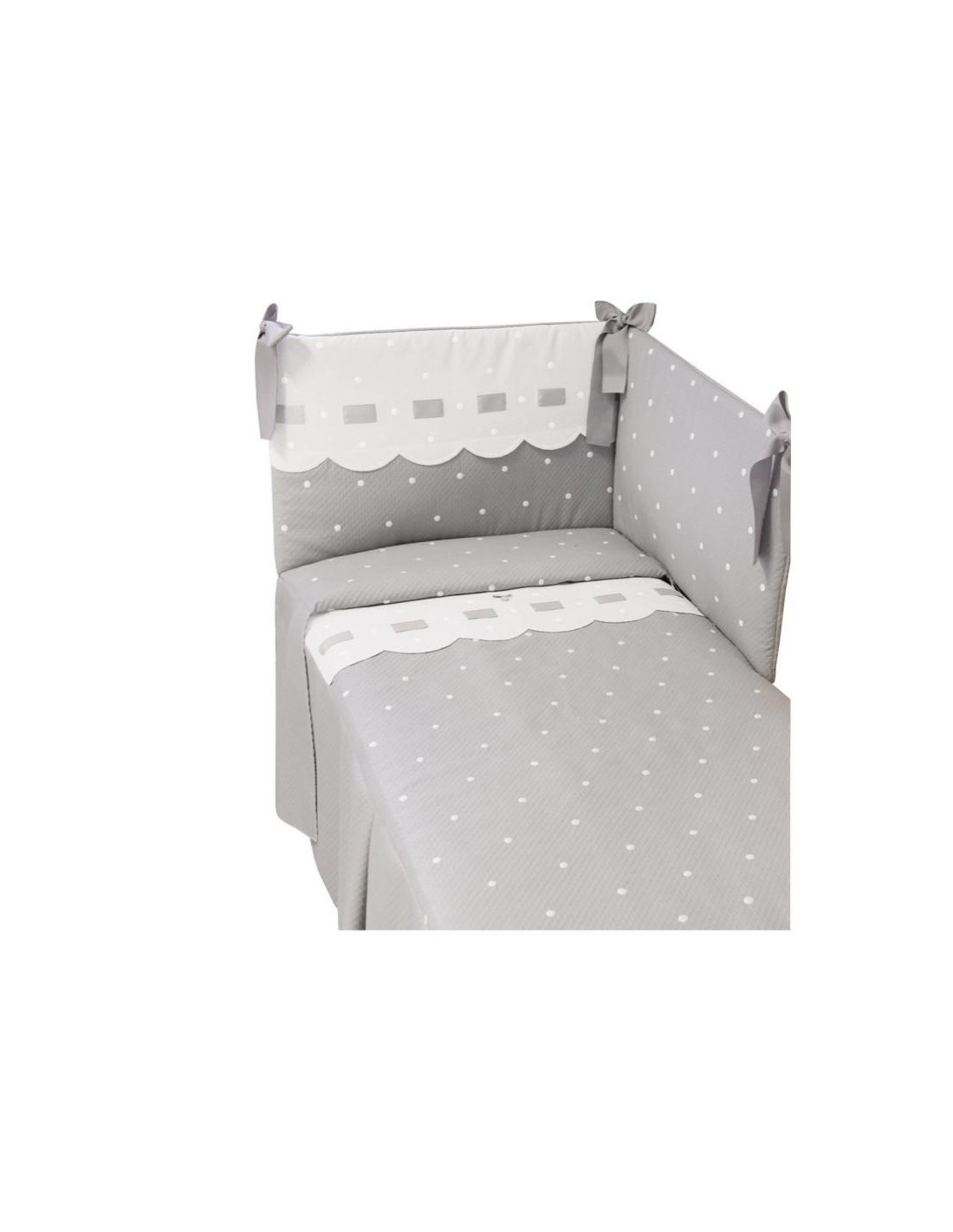 Pack de colcha y protector desenfundable con tejido lavable y relleno incluido. SIN Almohada. Con el protector evitas las corrientes de aire a tu bebe y a su vez lo proteges de posibles golpes con los laterales de la cuna evitando que sus brazos y sus pies puedan atraparse en la cuna. Esta pieza se ajusta de forma segura y fácil a la estructura de la cuna. La colcha tiene un diseño coordinado con el protector. En invierno el relleno mantiene cálido a tu bebé de manera constante. En verano al extraer el relleno la funda te sirve como colcha liviana. Oeko-Tex Standard 100 certificada, lo que significa que todos los materiales son probados y libres de sustancias nocivas Si te gusta puedes encontrar otros interesantes artículos de la colección, en esta misma línea con las mismas altas calidades. Todo realizado y diseñado en España con los mejores materiales y los tejidos de la más alta calidad.