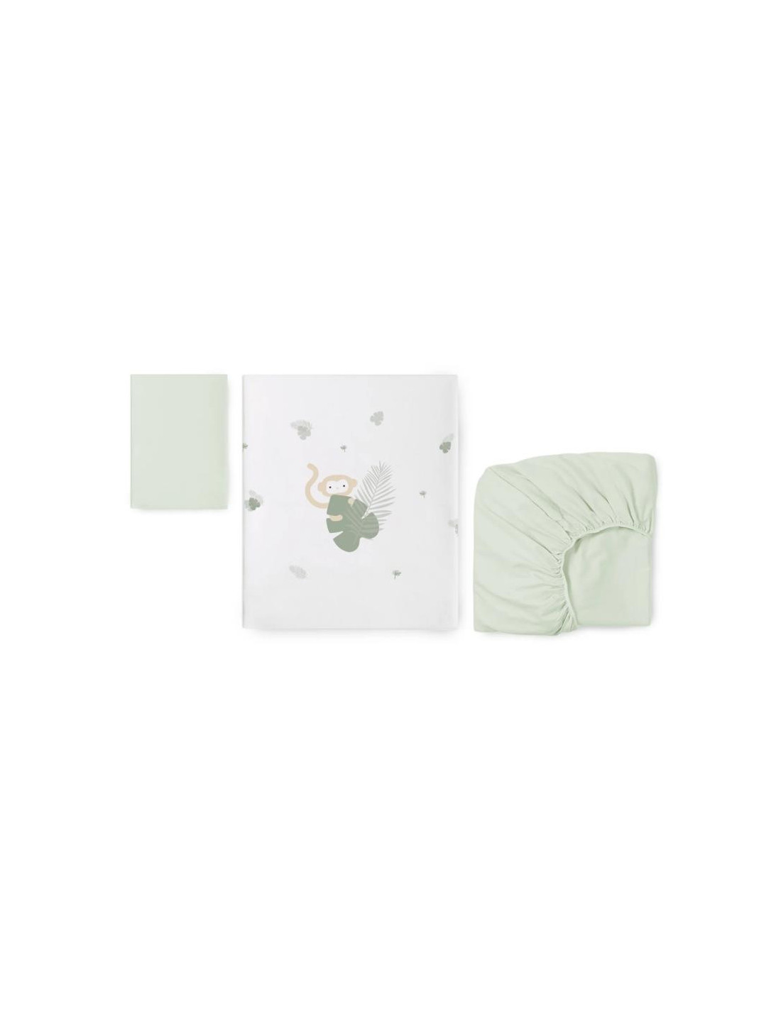 JUEGO SABANAS MINICUNA ALGODON 100% MONKEY BEIG VERDE