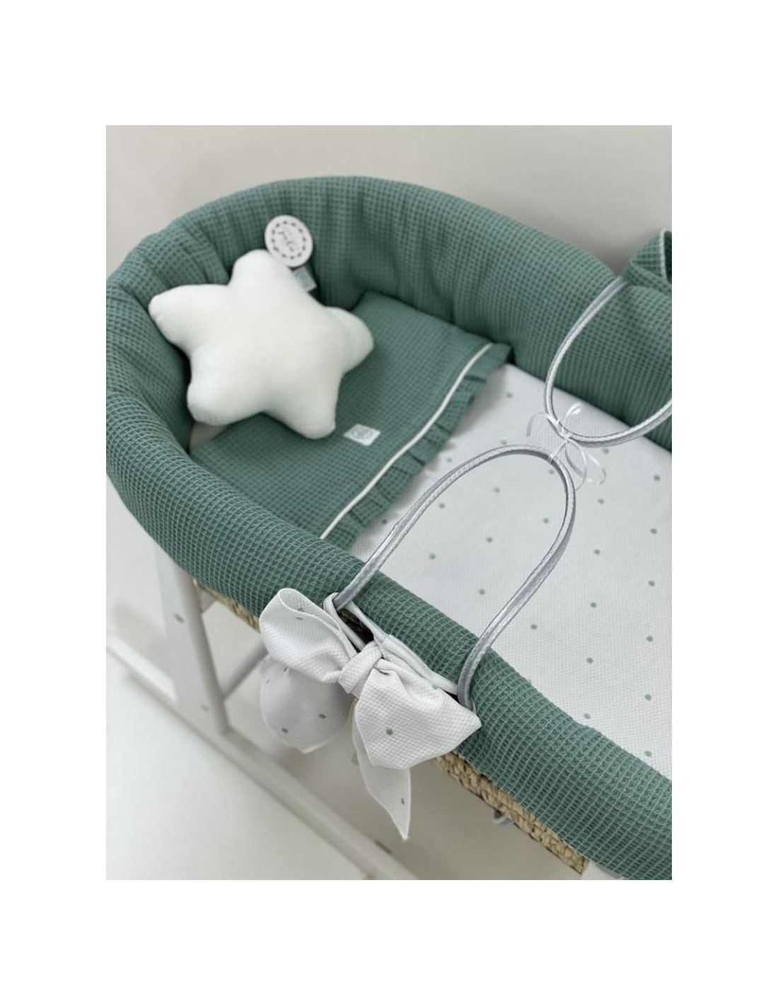 Capazo mimbre sin capota en pique gofrado verde,