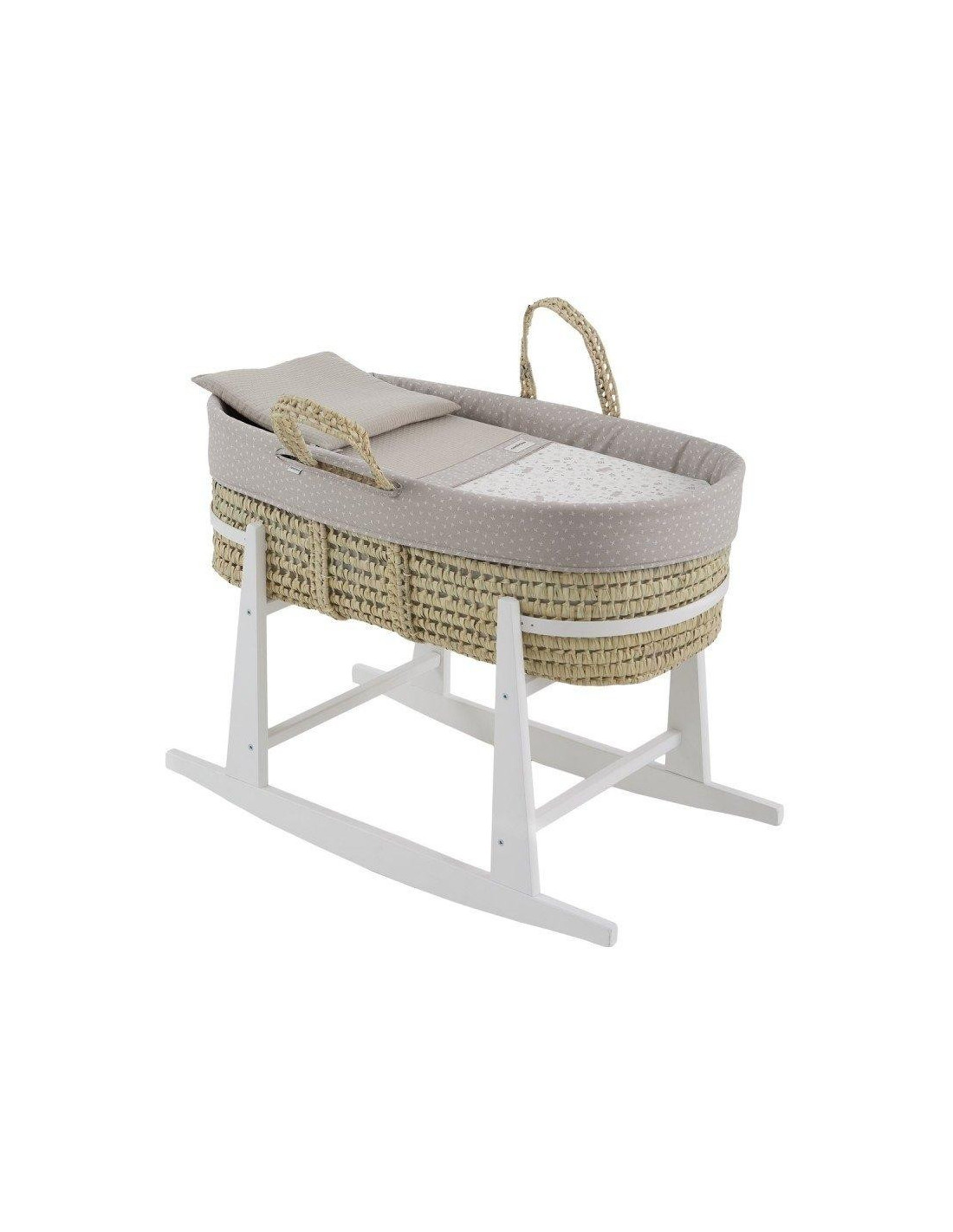 El moisés de palma acolchado de Cambrass es una opción excepcional para los primeros meses de vida de tu bebé. Su diseño cuidadosamente elaborado ofrece tanto comodidad como funcionalidad para satisfacer las necesidades de tu pequeño durante este período crucial de crecimiento. Fabricado con una base de mimbre, este moisés proporciona una superficie sólida y estable para el descanso de tu bebé. Viene completo con un colchón, una suave colcha, un cómodo cojín y una vestidura coordinable con la decoración de la habitación, añadiendo un toque de estilo y elegancia al entorno. Para complementar este moisés y brindarle aún más versatilidad, el porta Cuco de Cambrass, también conocido como portacapazo, está fabricado en madera natural de alta calidad. Su altura óptima permite una excelente visibilidad del bebé en todo momento, lo que facilita el contacto visual con los adultos desde la cama u otros lugares de la habitación. Además, su función de balancín proporciona un suave movimiento que ayuda a facilitar el sueño de los bebés, promoviendo un ambiente tranquilo y relajado.