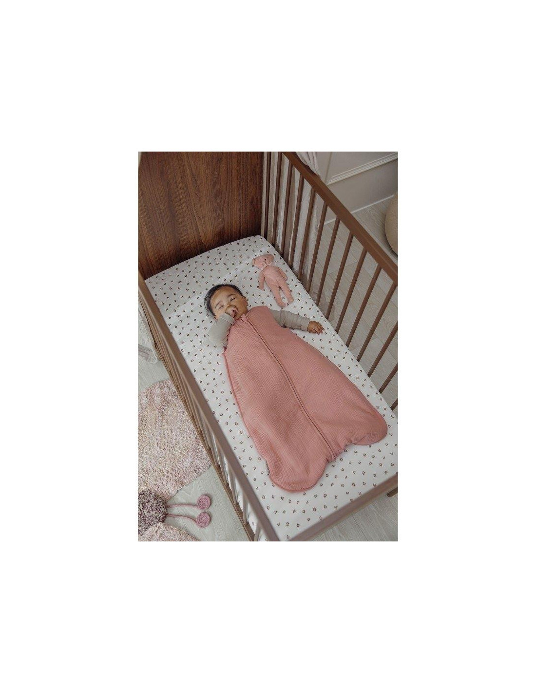 El saco de dormir forrado de muselina Meyco Baby está disponible en diferentes colores de moda. Gracias a ello, el color del saco siempre combina con la habitación del bebé y con el resto de su conjunto. El saco de dormir forrado de muselina prelavada está hecho de 100 % algodón suave y tiene un relleno de 100 % poliéster. Esto lo hace ideal para primavera y otoño, así como para los días y noches más fríos de invierno. El algodón de muselina es muy transpirable, absorbe la humedad de forma excelente y se seca muy rápido. Esto mantiene el entorno de descanso de tu pequeño a la temperatura perfecta.