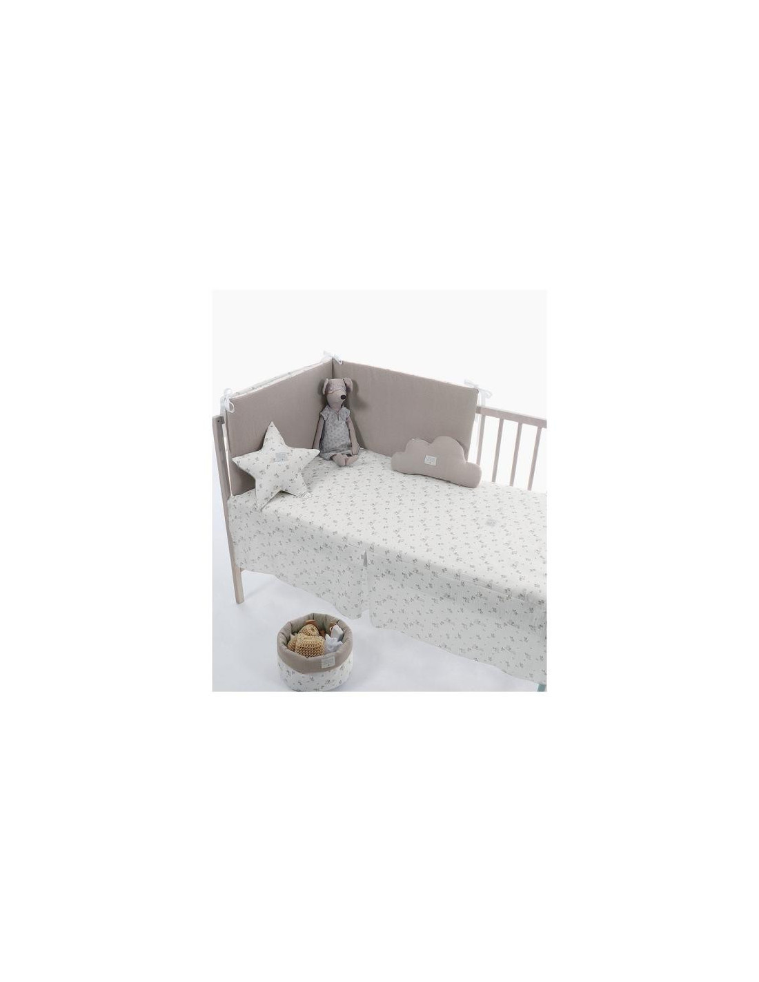 Pack de colcha y protector desenfundable con tejido lavable y relleno incluido. SIN Almohada. Con el protector evitas las corrientes de aire a tu bebe y a su vez lo proteges de posibles golpes con los laterales de la cuna evitando que sus brazos y sus pies puedan atraparse en la cuna. Esta pieza se ajusta de forma segura y fácil a la estructura de la cuna. La colcha tiene un diseño coordinado con el protector. En invierno el relleno mantiene cálido a tu bebé de manera constante. En verano al extraer el relleno la funda te sirve como colcha liviana. Oeko-Tex Standard 100 certificada, lo que significa que todos los materiales son probados y libres de sustancias nocivas Si te gusta puedes encontrar otros interesantes artículos de la colección, en esta misma línea con las mismas altas calidades. Todo realizado y diseñado en España con los mejores materiales y los tejidos de la más alta calidad.