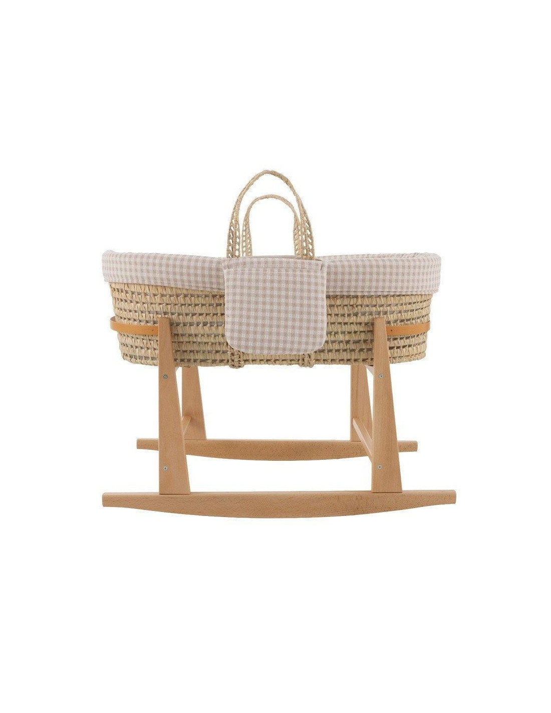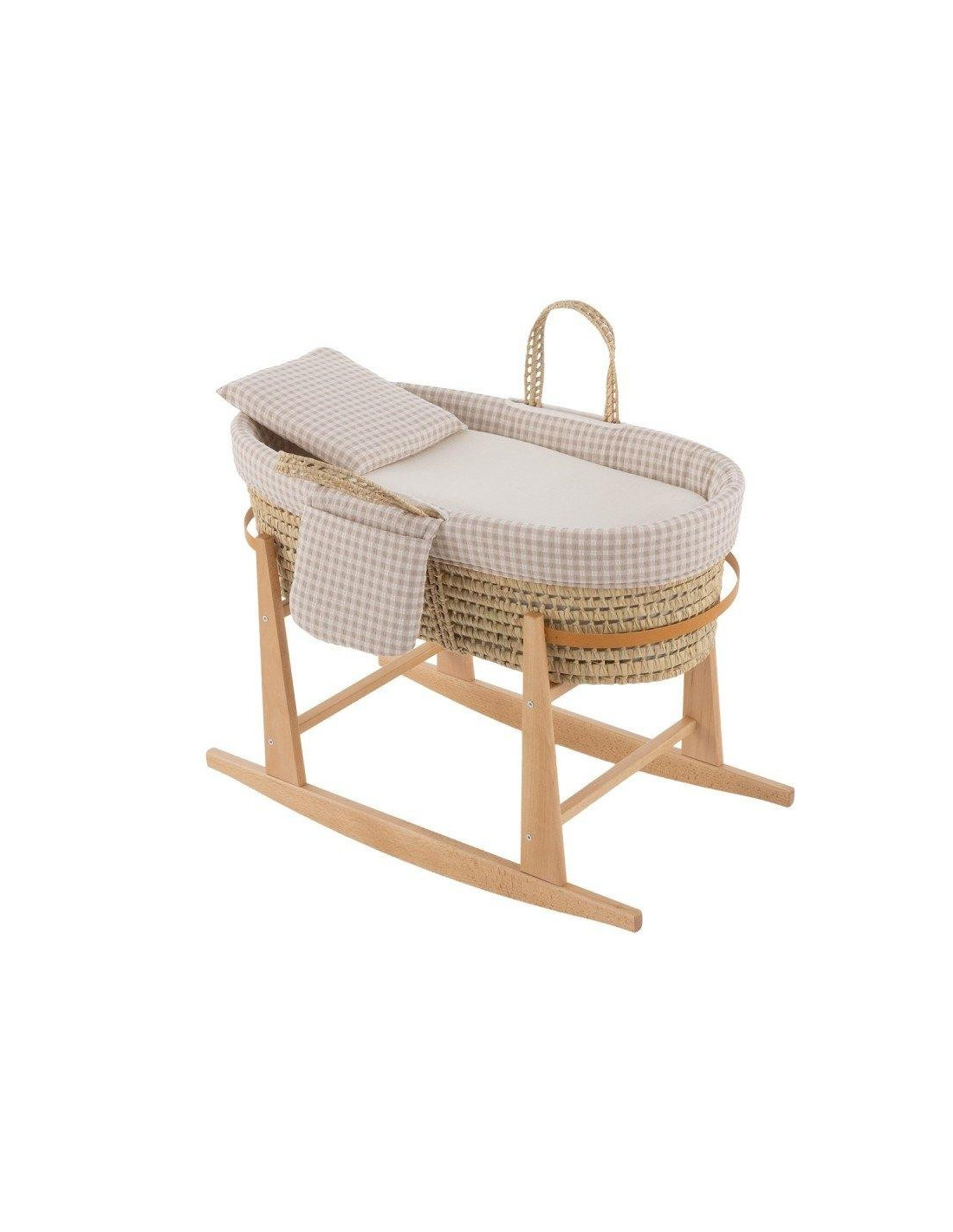 La colección de moisés Mio Cuco es la más exclusiva de moisés del mercado, toda diseñada y fabricada por Cambrass, la colección para nuestros bebés más selectos. Incluye un cojín y un práctico bolsillo para poder guardar, sonajeros, muselinas,& . El moisés de palma acolchado de Cambrass + patas de madera, está indicado para los primeros meses de vida del bebé y gracias a sus asas su trasporte es muy sencillo. Consta de una base de mimbre, colchón, colcha, cojín y vestidura. Además, cuenta con todos los certificados que garantizan la seguridad del bebé velando por su salud ya que el mimbre del moisés está tratado para la eliminación de pequeñas larvas de psocópteros que en determinadas ocasiones se encuentran en las hojas de palma utilizadas en la fabricación de los moisés. Este capazo es adecuado para niños que no pueden sentarse por si solos, girarse y que no pueden empujarse a si mismos con sus manos y rodillas. Máximo peso del niño: 9kg. Cumple la norma Normativa: UNE-EN 1466: 2015 Fabricado en España. Por Cambrass