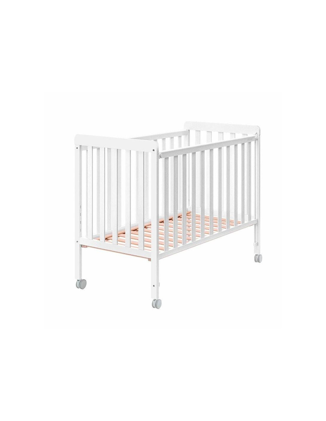 Nuestra cuna está fabricada en madera de haya lacada en blanco con pinturas al agua y barnices no tóxicos.