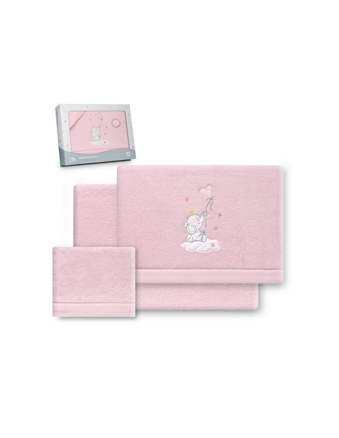 JUEGO SABANAS CUNA CORALINA ELEFANTE GLOBO ROSA INTERBABY
