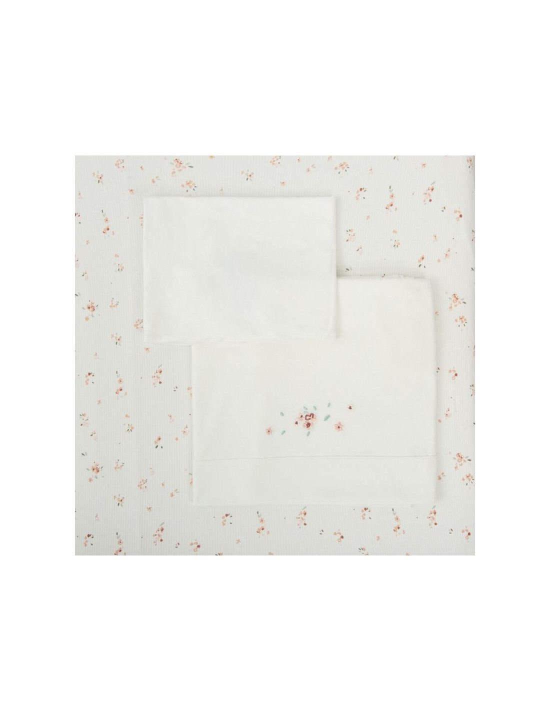 JUEGO SABANAS MINICUNA ALGODON 100% R01 MONET BLANCO ROSA BIMBI DREAMS