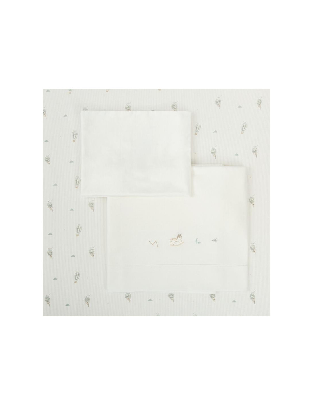 JUEGO SABANAS CUNA ALGODON 100% 535 BLUE SKY BLANCO VERDE BIMBI DREAMS